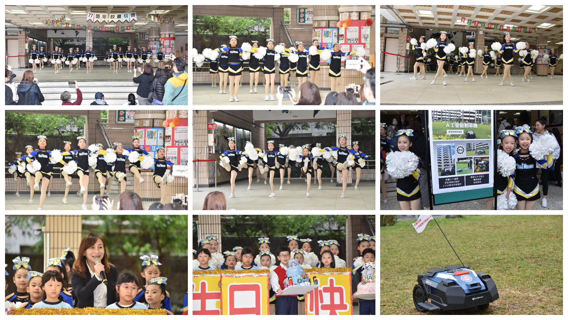 今年是再興創校77週年,學校於12月25日辦理校慶活動。適逢行憲紀念日放假,許多家長到校參與,校園中人潮踴躍、氣氛溫馨熱烈。慶祝活動由再興啦啦隊率先登場,隊員們已連續三年參加全國啦啦隊錦標賽「彩球指定動作」,並一舉囊括高、低年級組冠軍。孩子們以熱情奔放、動感十足的精湛舞姿,瞬間點燃全場氣氛。考量當日天氣與場地潮濕因素,今年健身操表演取消;由一年級學生端出五年級學生製作的生日蛋糕,全校齊聲合唱祝福再興生日快樂,並在溫暖的大合照中留下珍貴回憶,為校慶活動揭開序幕。啦啦隊精彩演出後,再興AI智能割草機於草坪亮相,吸引家長與學生駐足觀看。該設備運作過程零廢氣排放,是學校推動綠能與環境教育的具體行動。