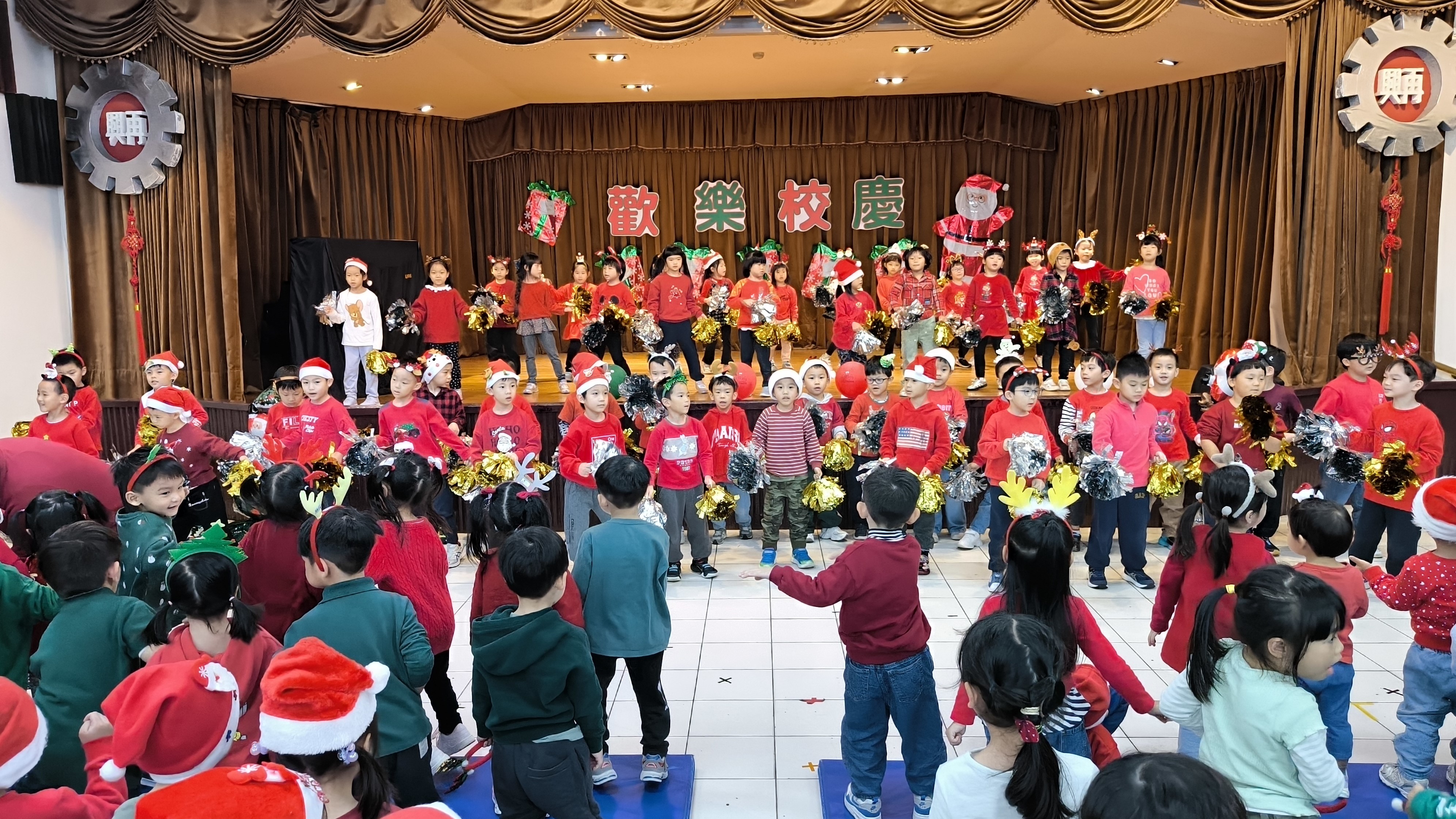 12月23日(二)校慶音樂會溫馨登場,各班寶貝們用心裝扮,伴隨著音樂載歌載舞,舞台上洋溢著純真的笑容與活力。當表演接近尾聲時,園長媽媽帶著兩位聖誕老公公驚喜現身音樂會現場,將滿滿的耶誕祝福與禮物送到每一位再興寶寶手中。在全園師生彼此互道「聖誕快樂、校慶快樂」的溫暖祝福聲中,孩子們感受著被愛包圍的幸福時刻,也在歡笑與掌聲中,留下屬於校園最美好的節慶回憶。