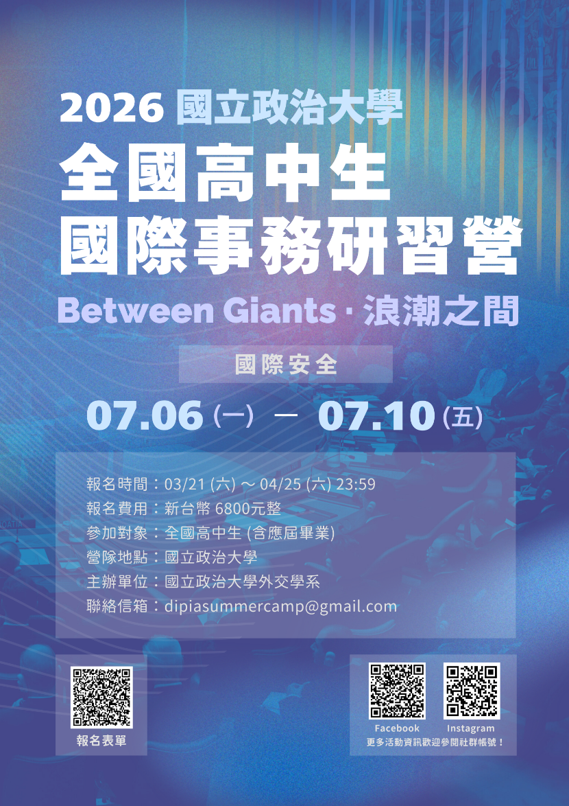 國立政治大學「2026全國高中生國際事務研習營」活動 說明: