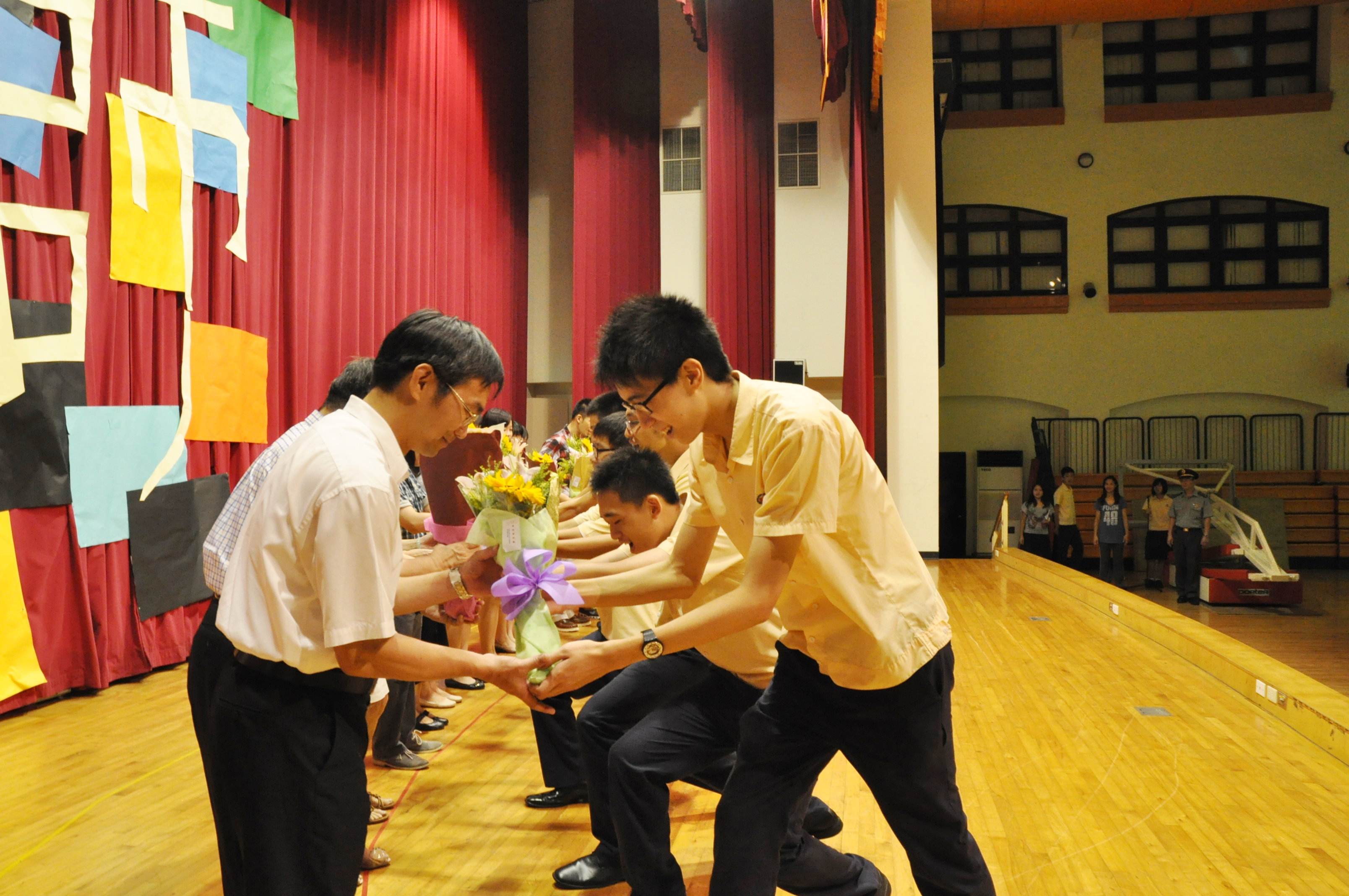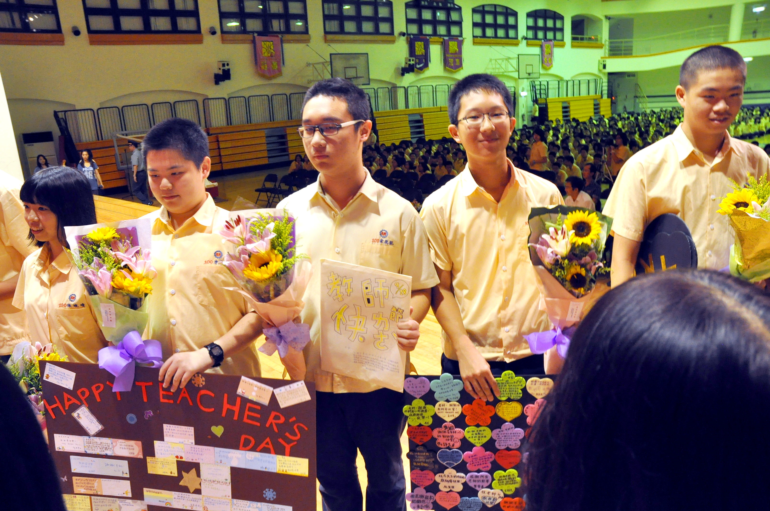 全校同學齊聚本校知新樓B3體育館,在溫馨感人的音樂聲中,由班聯會、班代表及田徑隊組成獻花隊伍依序上台敬獻花束及卡片給各班導師、行政與專任教師們,同學們透過麥克風表達對老師最真摯的感謝,並由各班呈現謝師巧思在班級特色影片中,在同學們精心設計籌劃的橋段中,豐富了每位教師執教生涯的燦爛;活動最後,在班聯會全體同學的自製影片「當我們變成了老師…」、高一對口相聲「口吐蓮花」與吉他社的「天使」歌聲中劃下美麗的句點。