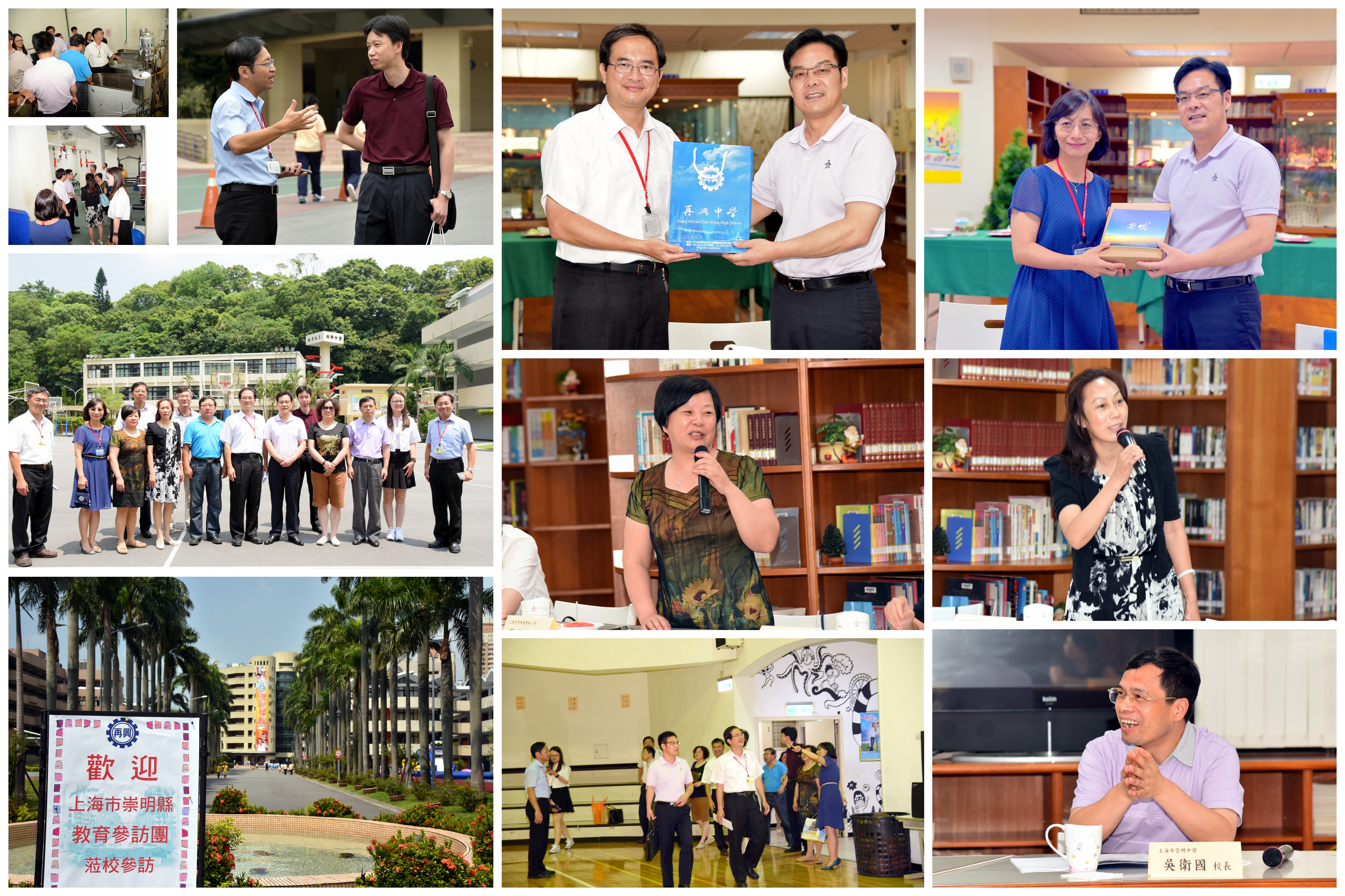 8月5日由上海市崇明縣教育局黃乃華副局長率領該區行政主管4人(堡鎮-沈雲副鎮長、三星鎮-陸華副鎮長、青少年活動中心-顧錦匡主任、教育局基教科-耿慧慧副科長)暨中小學5位校長(崇明中學-吳衛國、城橋中學-沈鋼、東門中學-王永飛、實驗中學-蔡國菊、實驗小學-張秀麗)蒞校參訪。本校中學部柯校長、張副校長、教務處陳主任偕同小學部楊校長共同接待。