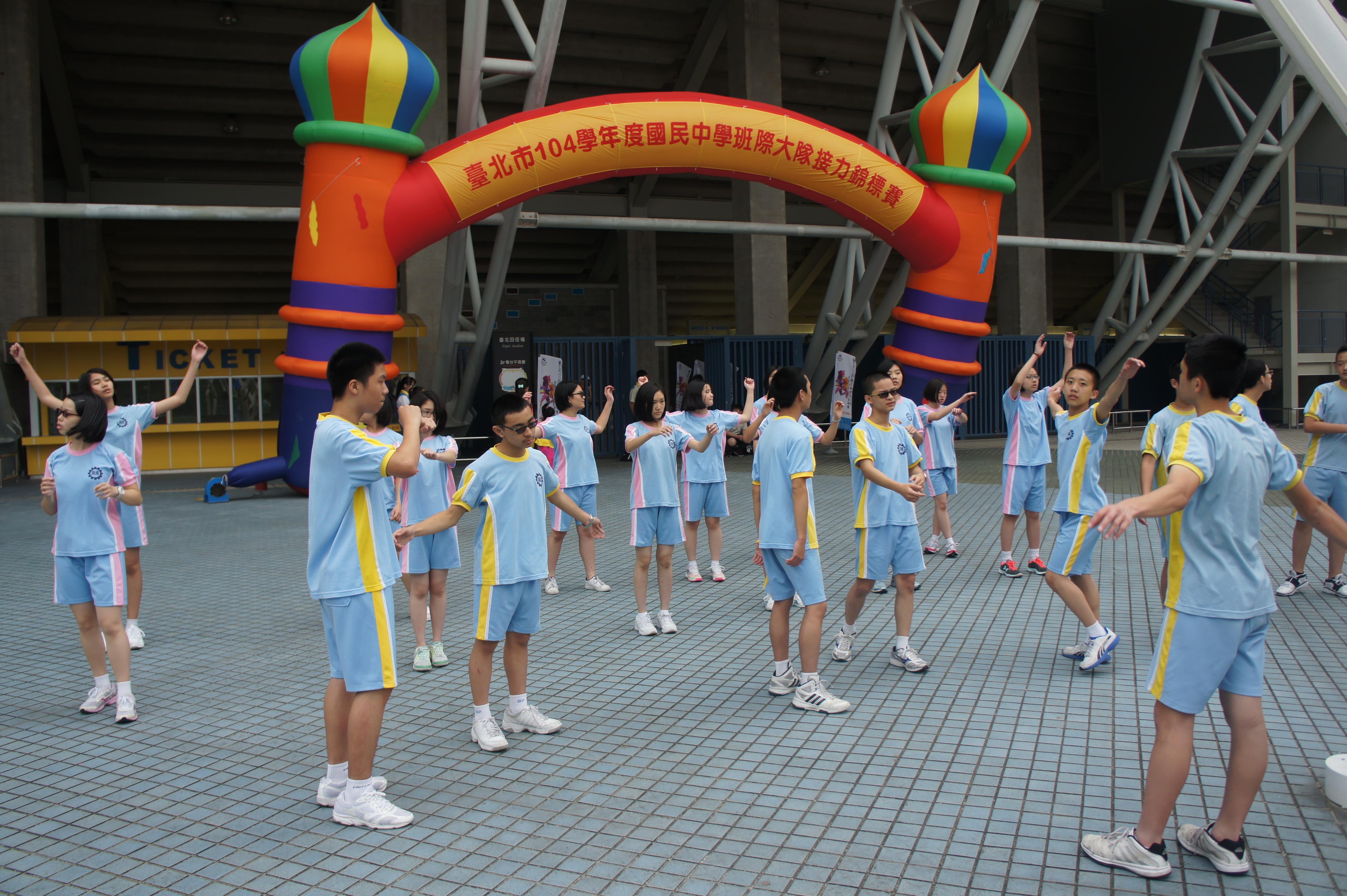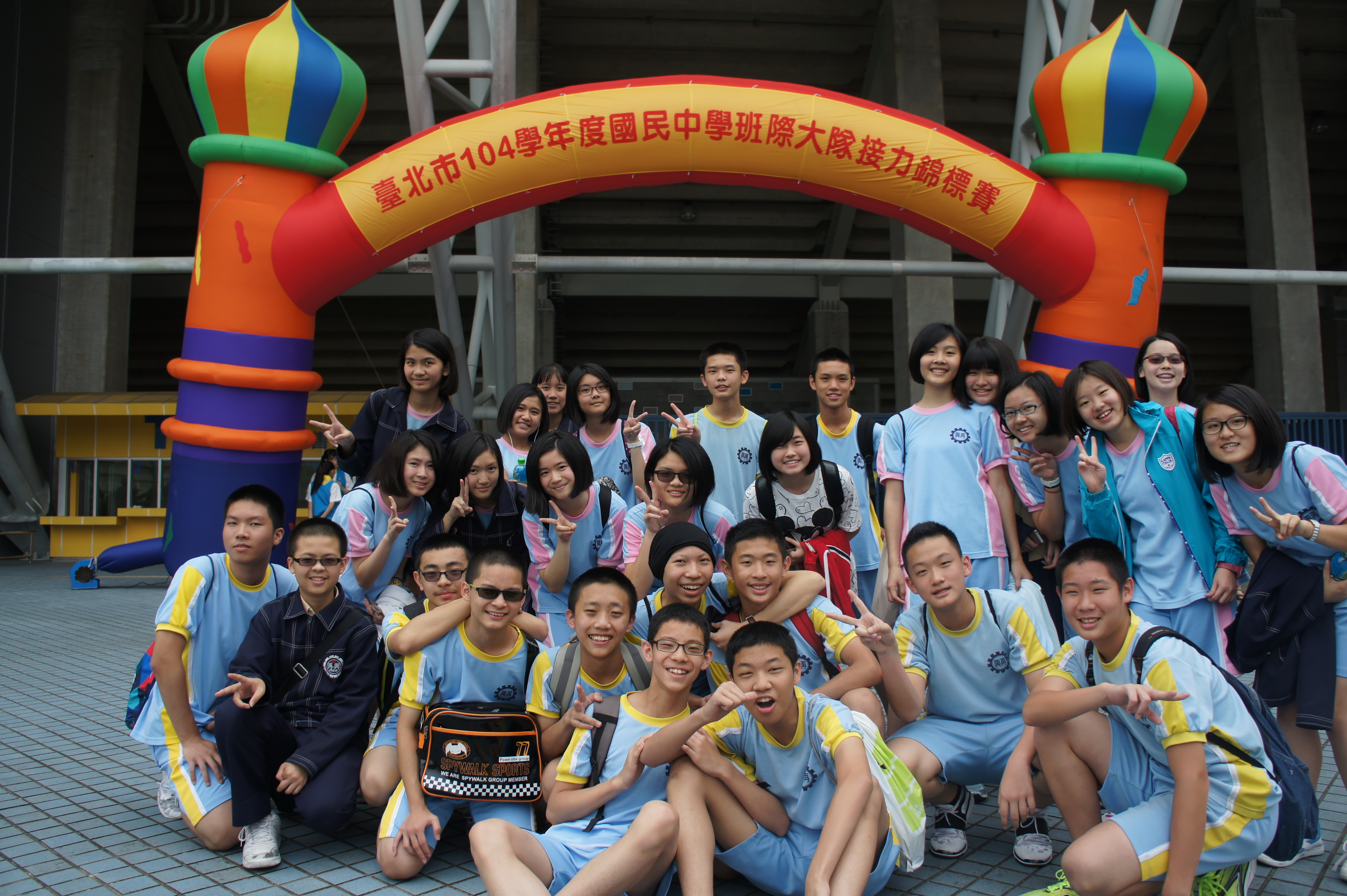 本校由八年平班代表參加「104學年度台北市國民中學班級大隊接力錦標賽」,比賽於105年4月30日假台北田徑場舉行,當天由薛組長帶隊前往參加,雖然成績無緣晉級決賽(各年級前六名),但同學們發揮不屈不撓團結的運動精神,努力不懈完成比賽,值得鼓勵喝采。