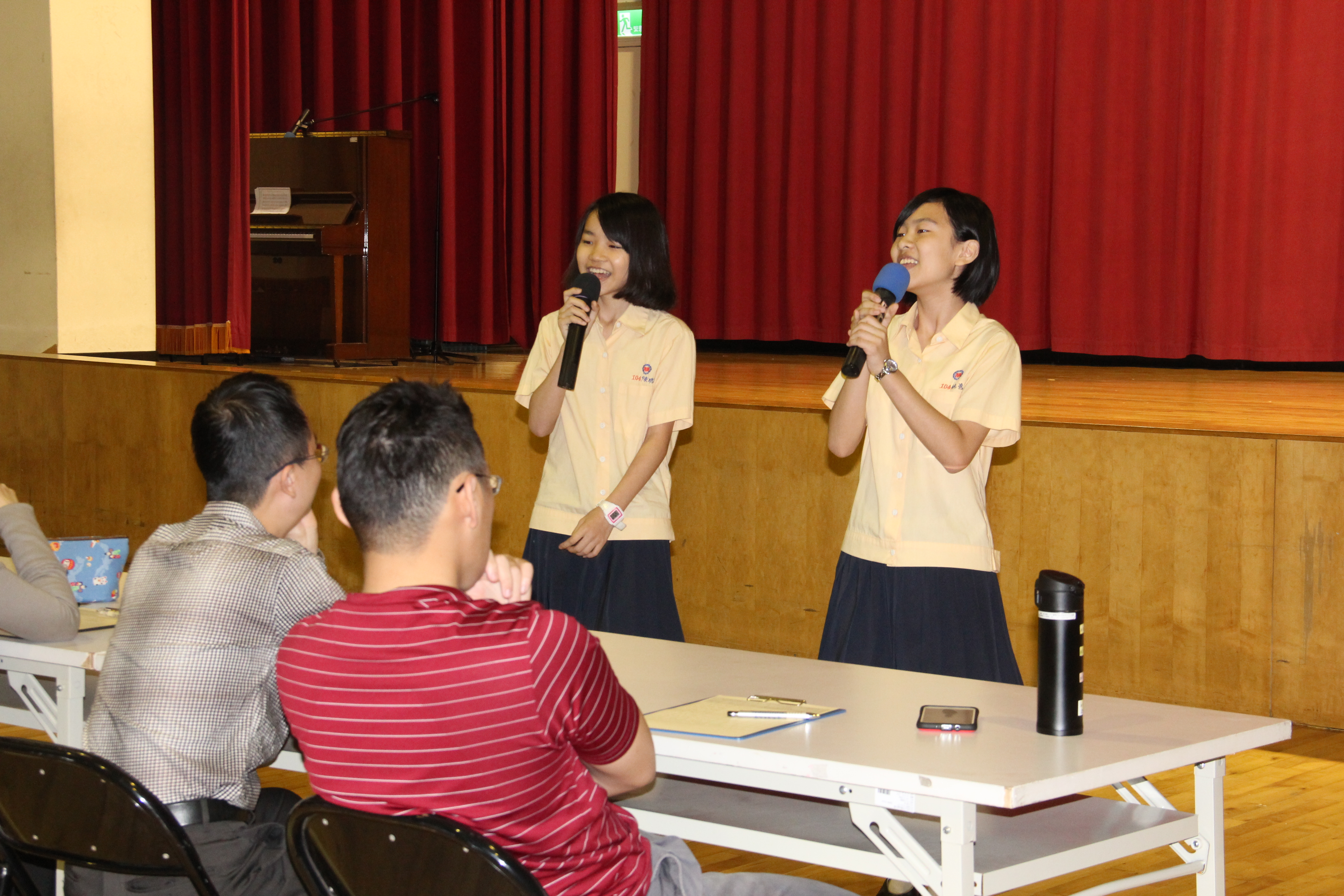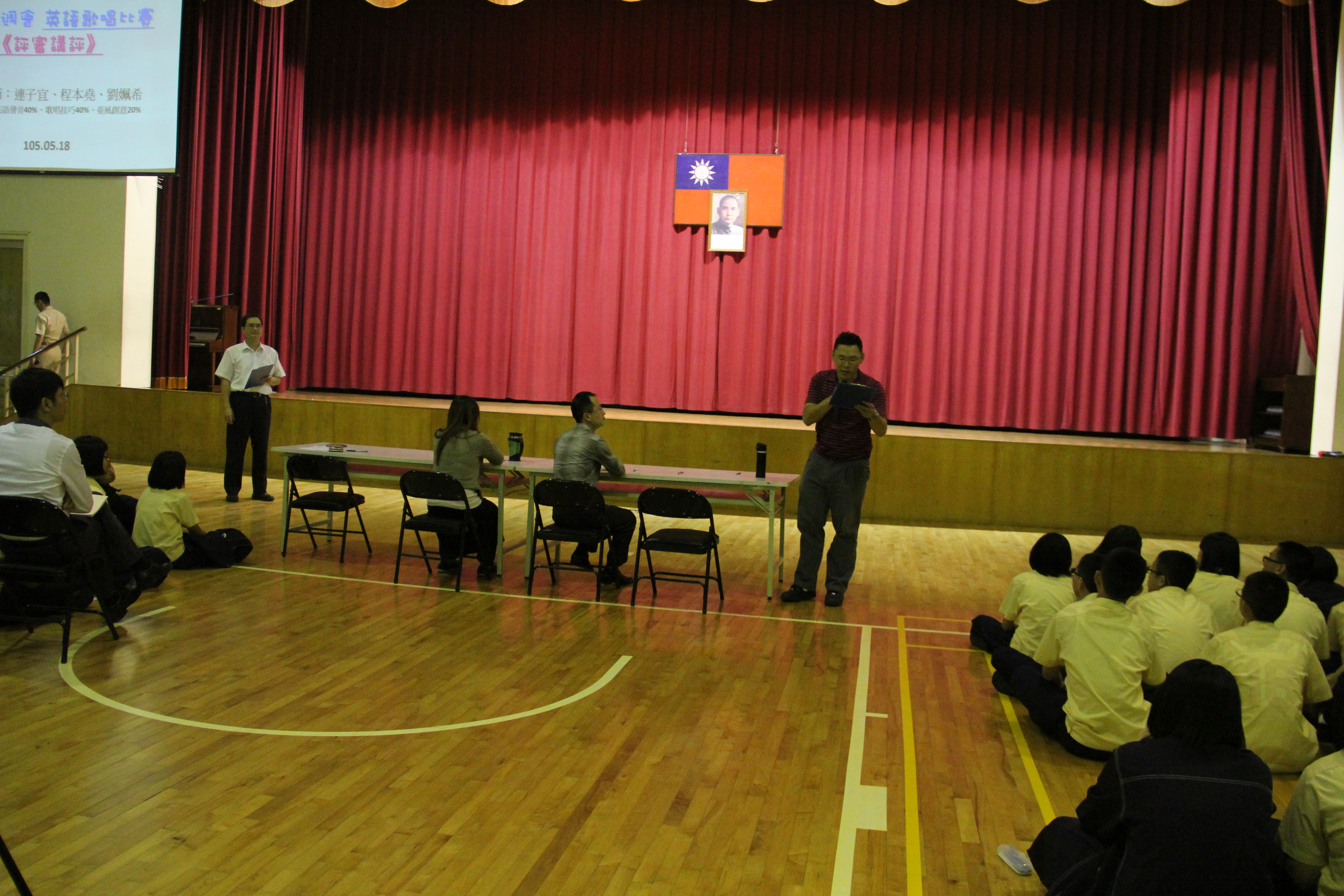 初賽於105年5月5日中午舉行,由七年級及八年級同學共計15組隊伍參加比賽,比賽隊伍紛紛使出渾身解數將英語歌曲詮釋得曲曲到位,評審委員們就同學的音質展現與英語發音進行選評工作,最後公告初選成績,同學們也展現運動家精神祝賀進入決賽的隊伍能有好表現;決賽於105年5月18日(三)上午週會課進行,席間由劉姵希老師、程本堯老師以及連子宜老師就參賽者的英語發音、歌唱技巧與臺風創意分別給予評分;同學們發揮服裝創意展現舞台魅力也與台下各班互動交融出活潑熱情的青春氣息,最後,擇優六組獲得優勝。
