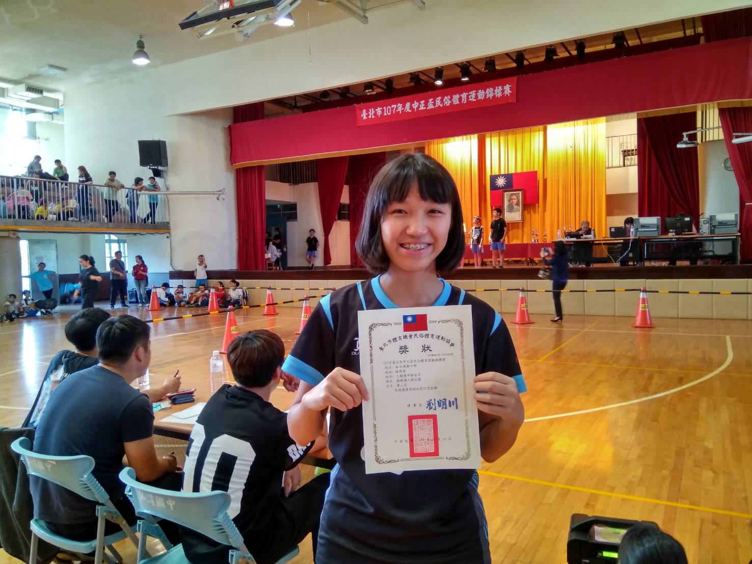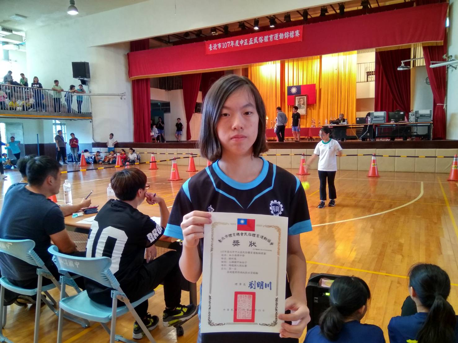 107學年度台北市中正杯民俗體育運動錦標賽於11月15日在弘道國中舉行,徐聖明老師指導本校民俗隊成績優異,榮獲: