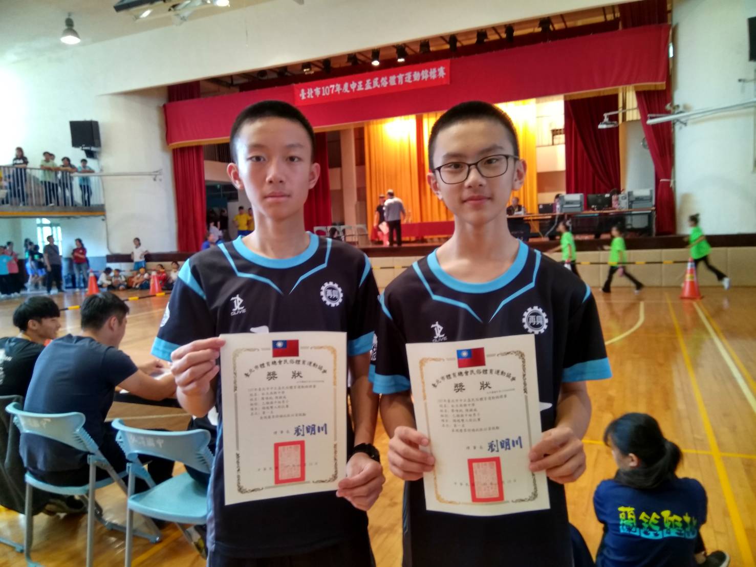 國中男子組雙人對抗賽冠軍:八年信班-廖唯鈞、陳穎威。