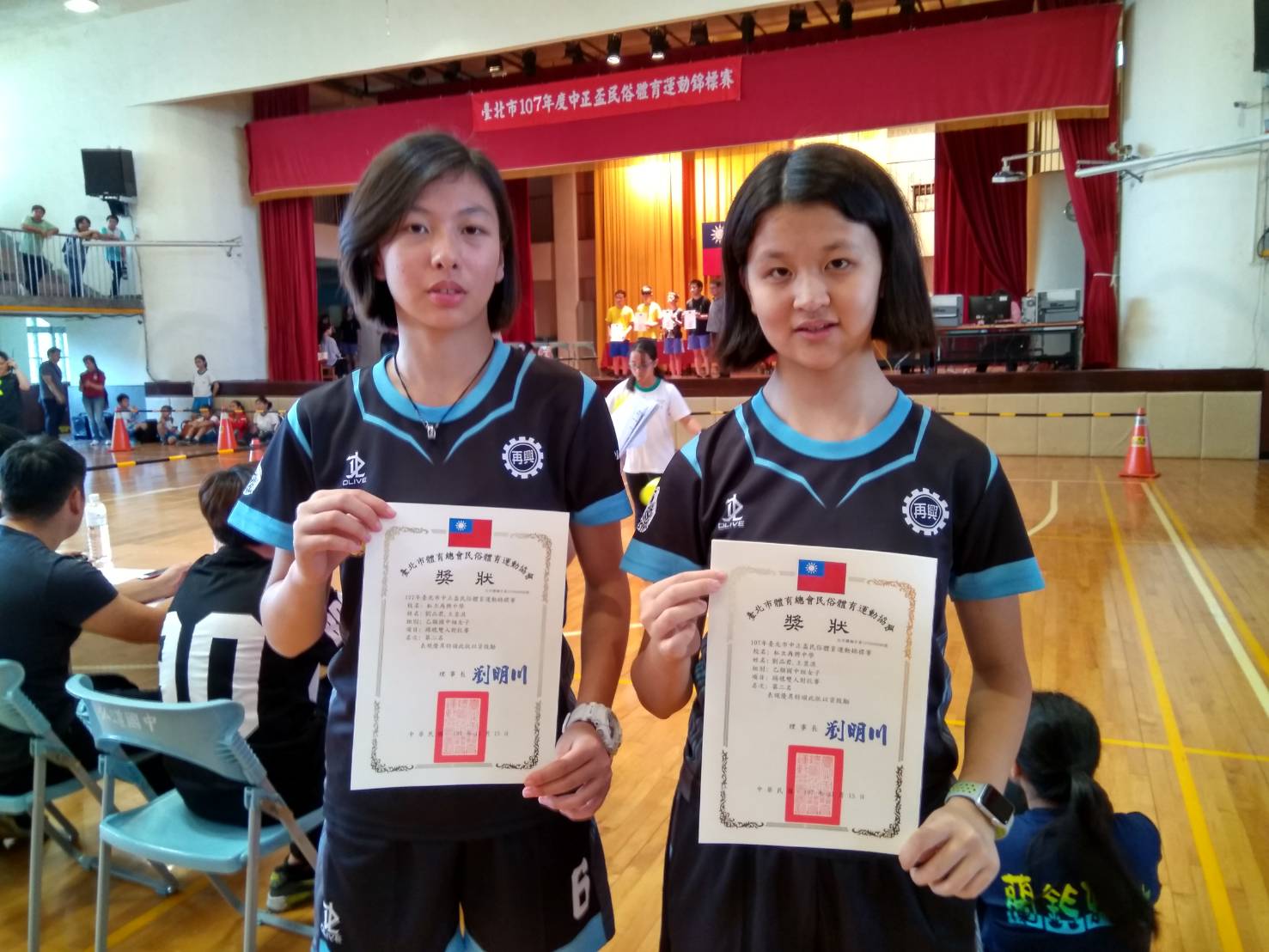 國中女子組雙人對抗賽亞軍:九年忠班-劉品君,九年愛班-王昱淇。