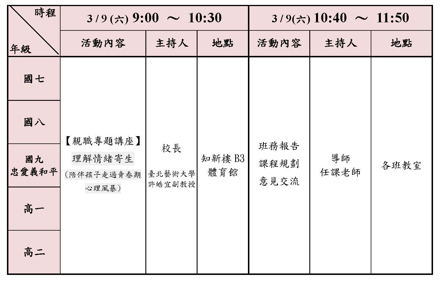 本校107-2學校日將於3/9(六)上午九時舉辦,歡迎家長踴躍參與。