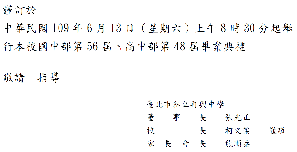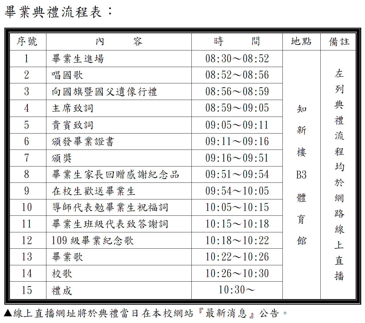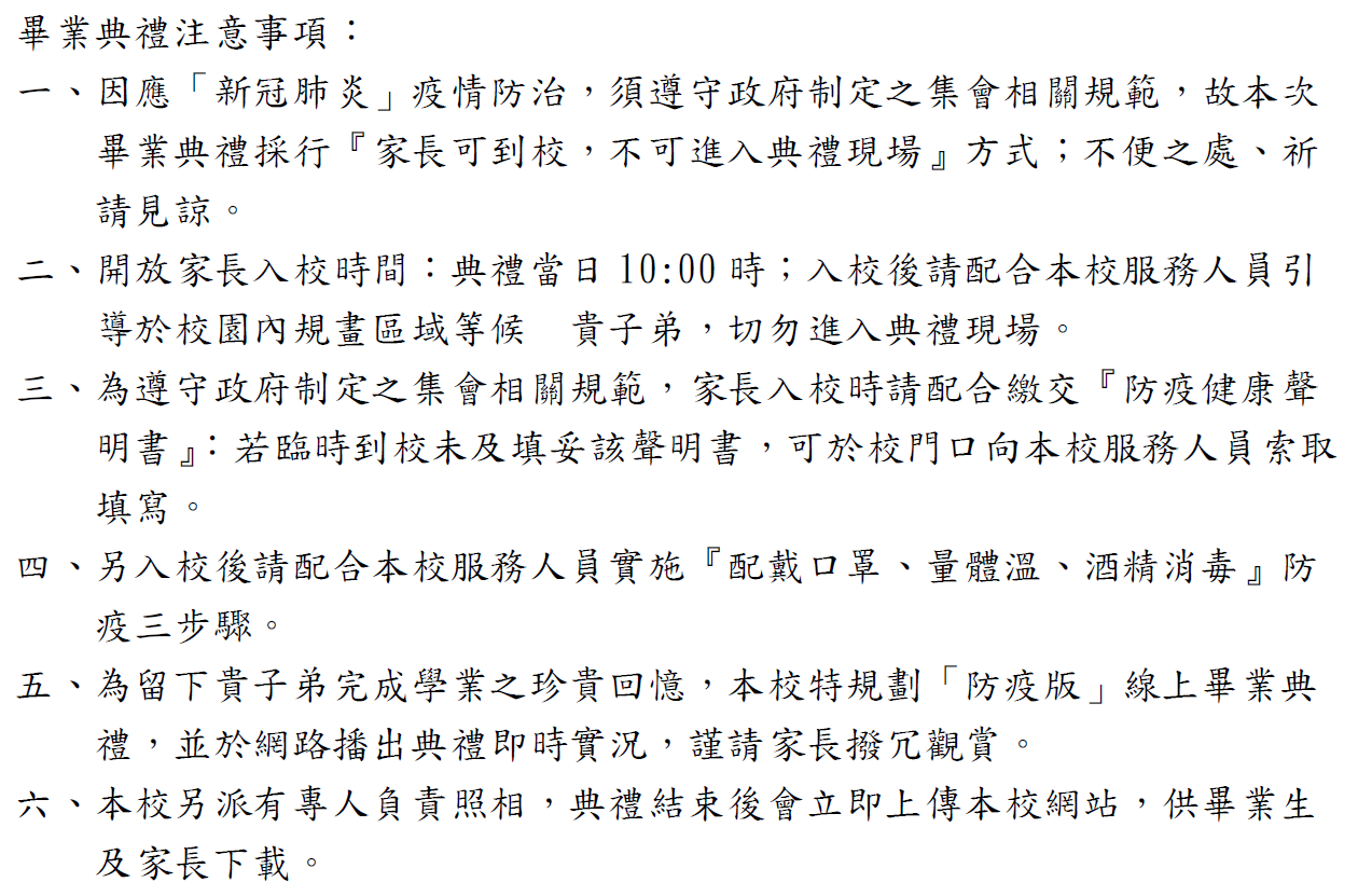 本校國中部第56屆、高中部第48屆畢業典禮說明