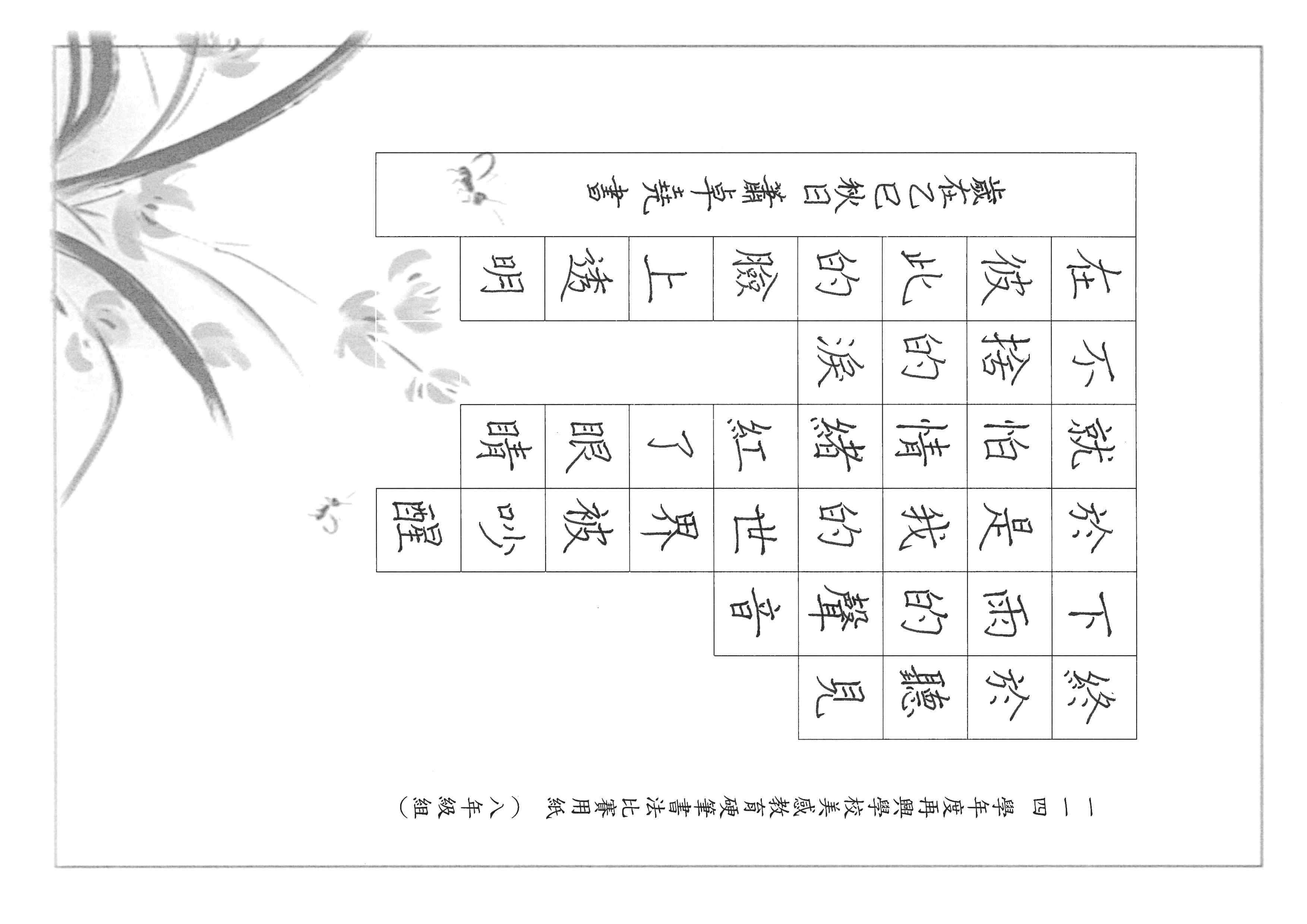 本校114學年度美感教育硬筆書法競賽由圖書館主辦,於9/12進行初選,並於9/30假圖書館辦理複賽,各年級寫手均展現出精湛的書寫技藝,作品無論在字形、筆畫及整體美感上,評審老師皆給予高度評價,最終獲獎者脫穎而出,為活動增添了精彩瞬間。各年級優勝名單如下: 國 中 部 高 中 部