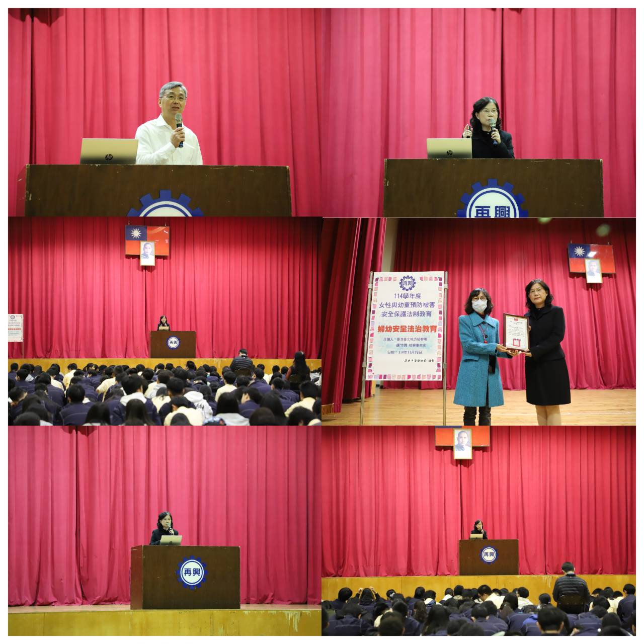 114學年度第一學期第十二週高中部週會,於114年11月19日上午第二節,假知新樓B3體育館進行,本校高中一、二年級學生與老師約571人參加。講師由臺北市政府教育局協調臺北地檢署,指派康竹嫺檢察事務官蒞校宣導。