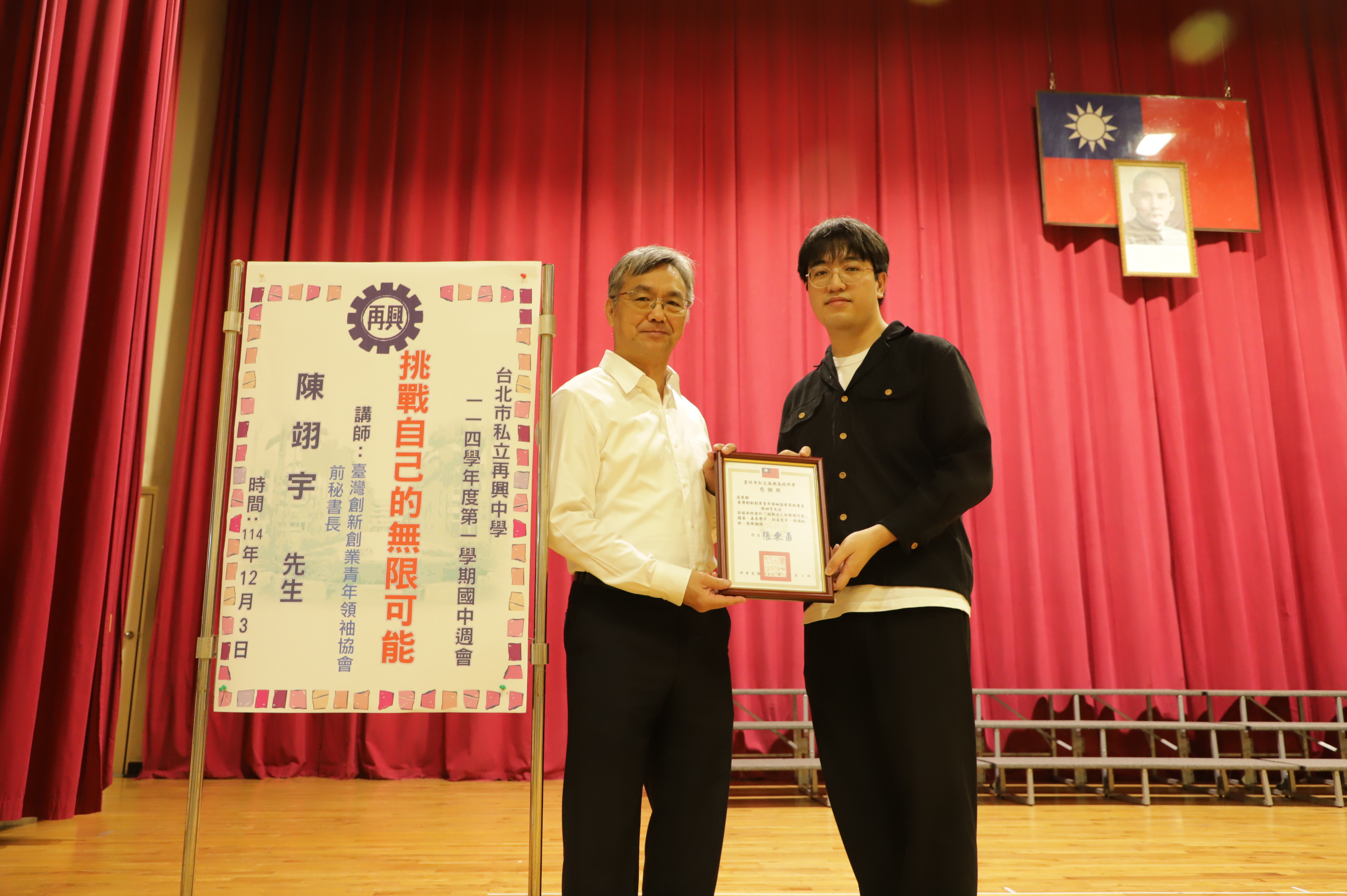 本校國中部於今日(12月3日)上午的週會時間,邀請到國立陽明交通大學醫學系學生、同時身兼臺灣創新創業青年領袖協會及教育新創組織「尋星人行動實驗室」共同創辦人—陳翊宇先生,進行一場主題為「心有多大,世界就有多大:挑戰自己的無限可能」的專題演講。陳翊宇透過自身「橫跨醫學、新創與教育」的斜槓人生經歷,深度探討國中生面對的學習壓力與生涯選擇。