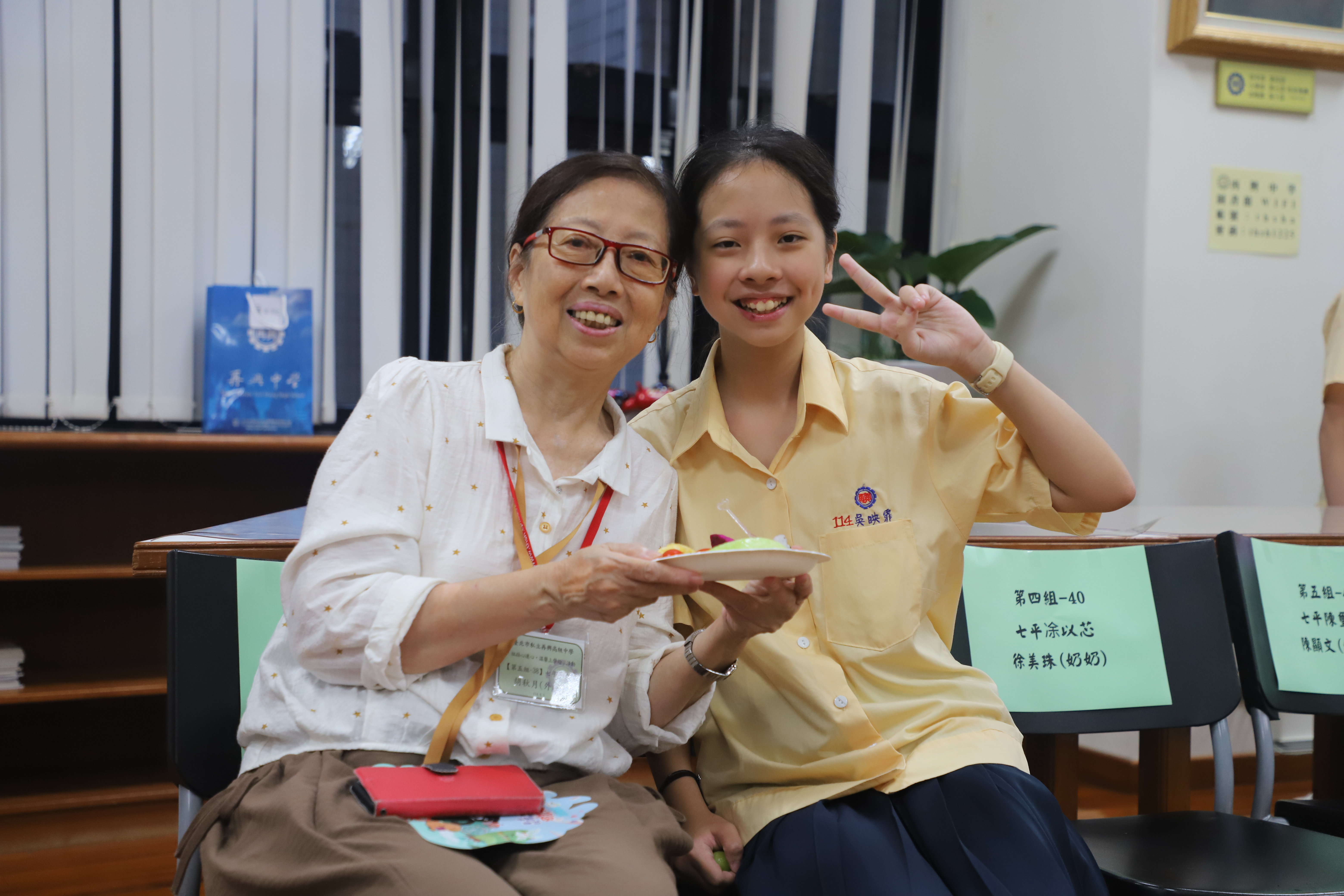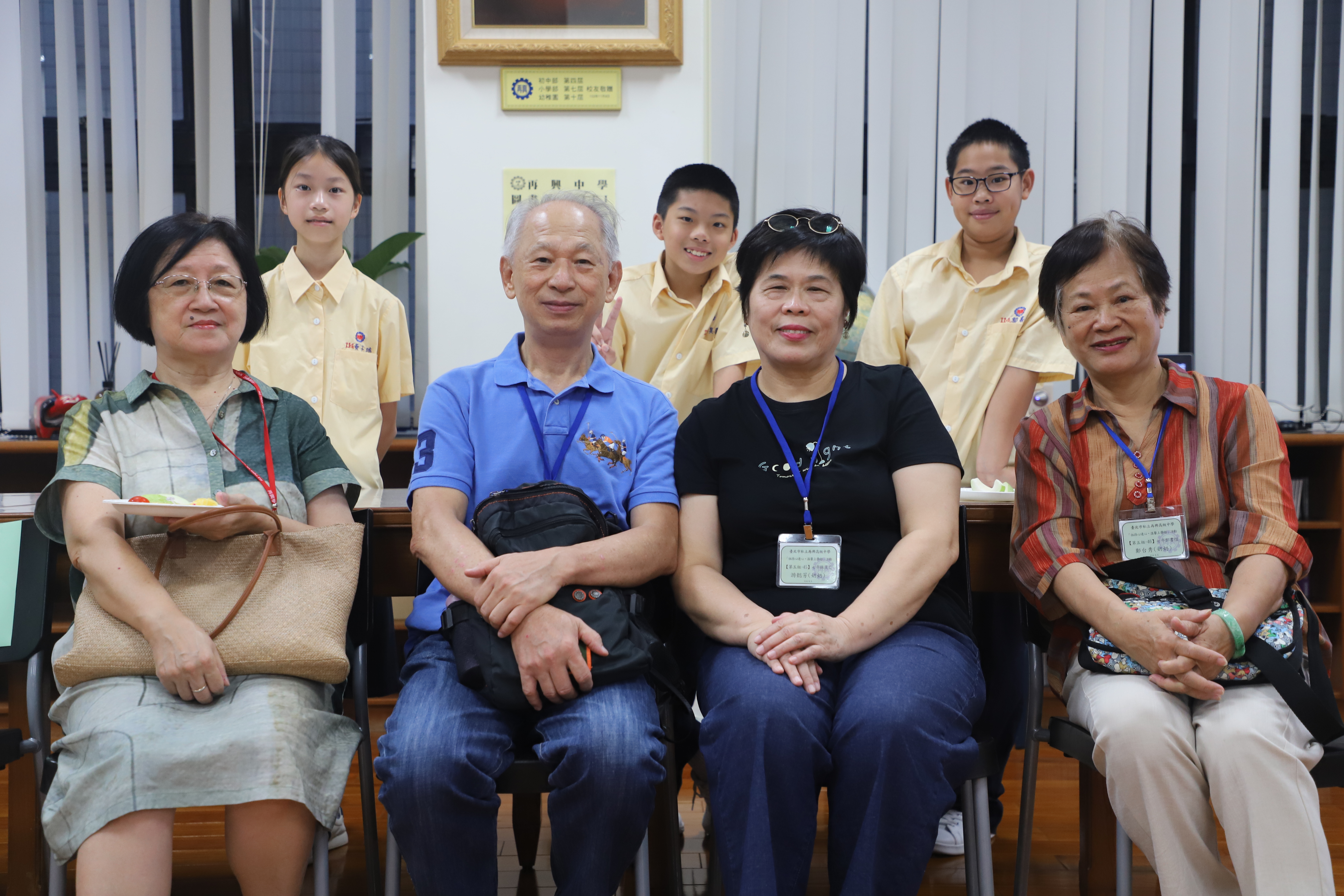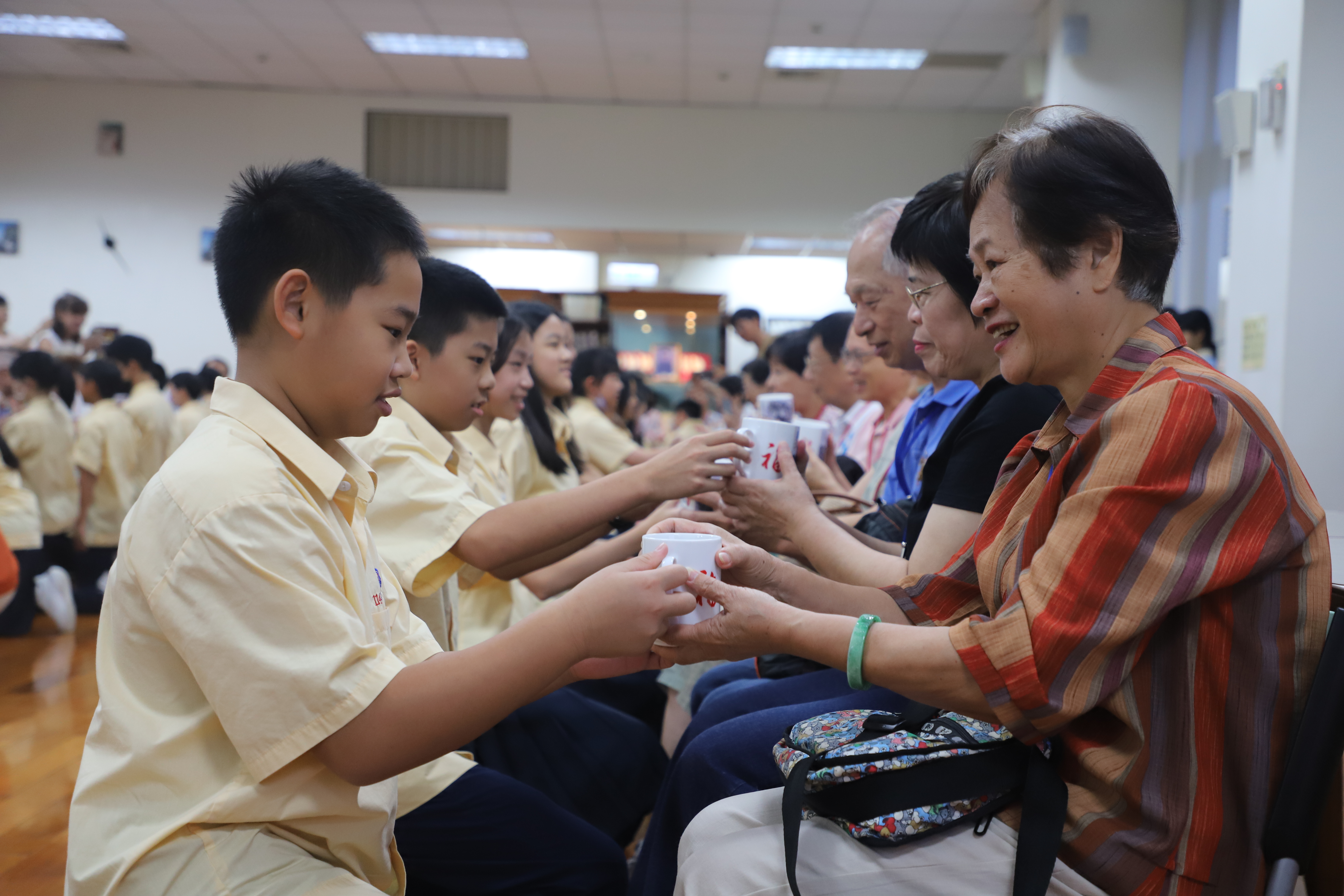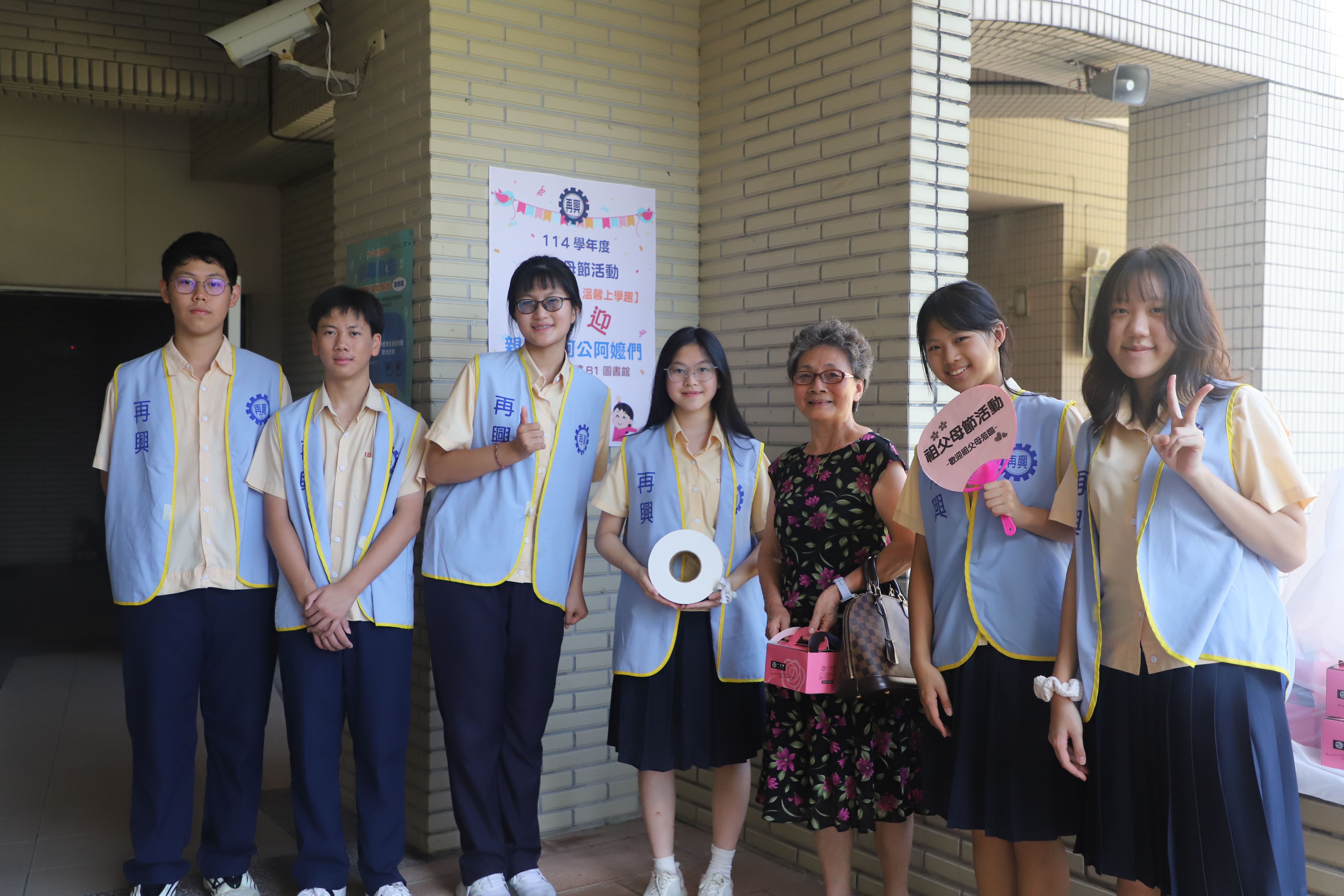 114學年度「祖孫心連心‧溫馨上學趣」 祖父母節活動報導 為慶祝一年一度的「祖父母節」,本校特於9月5日(五)邀請國中部七年級新生的祖父母參加「祖孫心連心‧溫馨上學趣」活動,今年共計46位阿公、阿嬤參與,在14位同行家長及30位孫子女的陪同下,歡喜蒞校參加活動及參觀校園。 本校自101學年度起開始辦理新生祖父母節活動,在活動的這一天開心迎接祖父母與孫子女一同來上學!今年依然希望藉由此活動能讓祖父母感受到孫子女已經上了國中逐漸長大懂事,也讓孫子女體會照顧長者的反哺責任,願祖孫之間彼此可分享生活,讓心靈更加靠近。孫子女向祖父母奉茶行孝親禮、擁抱祖父母,共享祖孫親情,其中有部分家庭的父母親也全程陪同,連繫祖孫三代情,期望孫子女從與祖父母的互動中培養尊親敬老的態度,進而更加成熟穩重、長大懂事。 再興大家長張東勇校長在致詞時歡迎並感謝祖父母蒞臨參與這個活動,正逢開學季,祖孫一起上學具教育傳承意涵,長者藉此分享他們的生命經驗及人生智慧,建立無年齡隔閡的社會。祖父母節的初衷是期望喚起晚輩對長者的重視,因此,「祖父母節」的對象不僅是祖父母,還有尊敬如祖父母的長者,期許每位同學都能發揮老吾老以及人之老的精神! 再興祖孫週的辦理目的不僅僅是增進甜蜜溫馨的隔代情誼,更希望以祖父母節為出發點,進而傳承前人的智慧及生命力,加上青少年的創意活力,讓世界更加美好,期待明年新生們祖孫再相會喔!