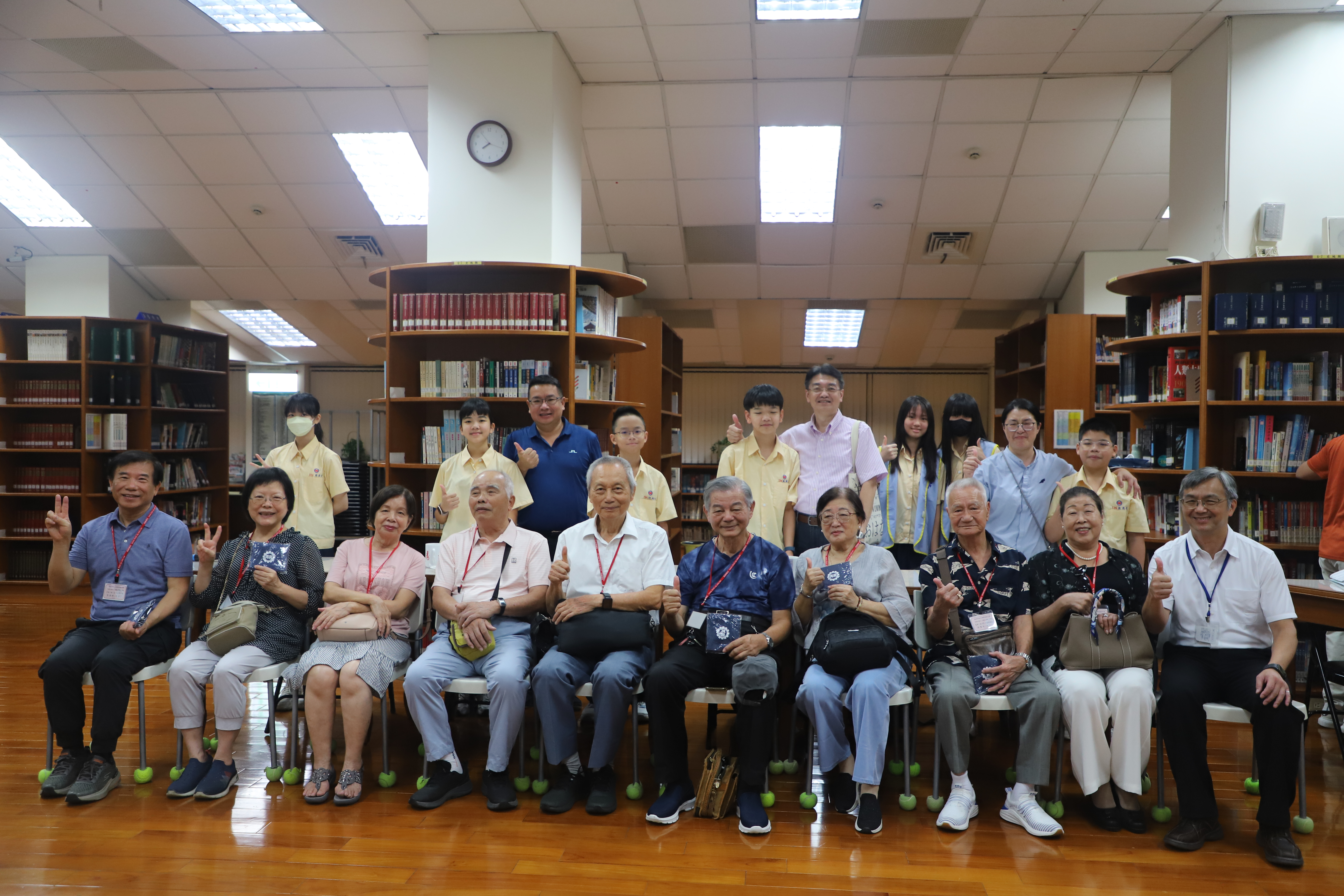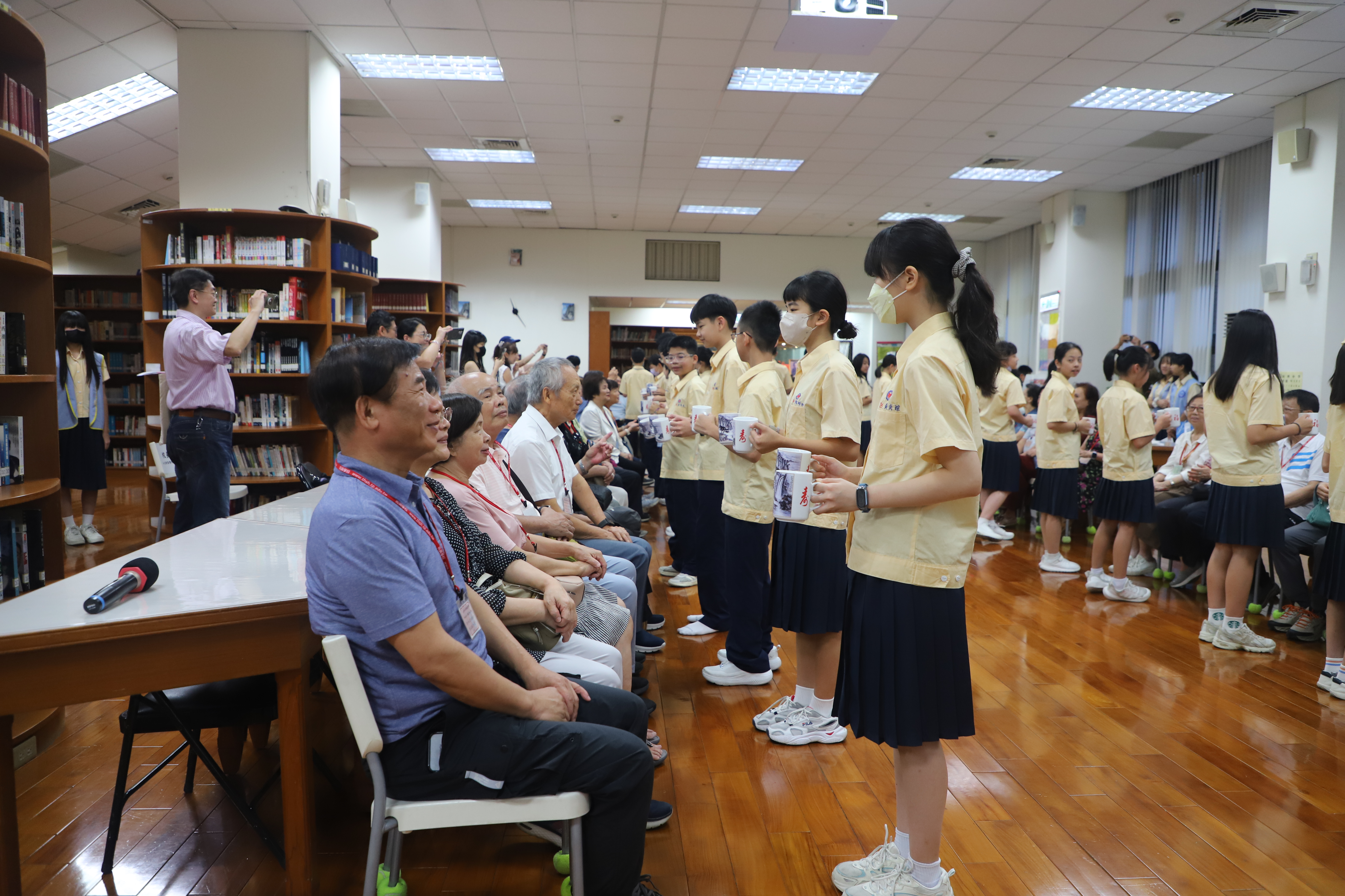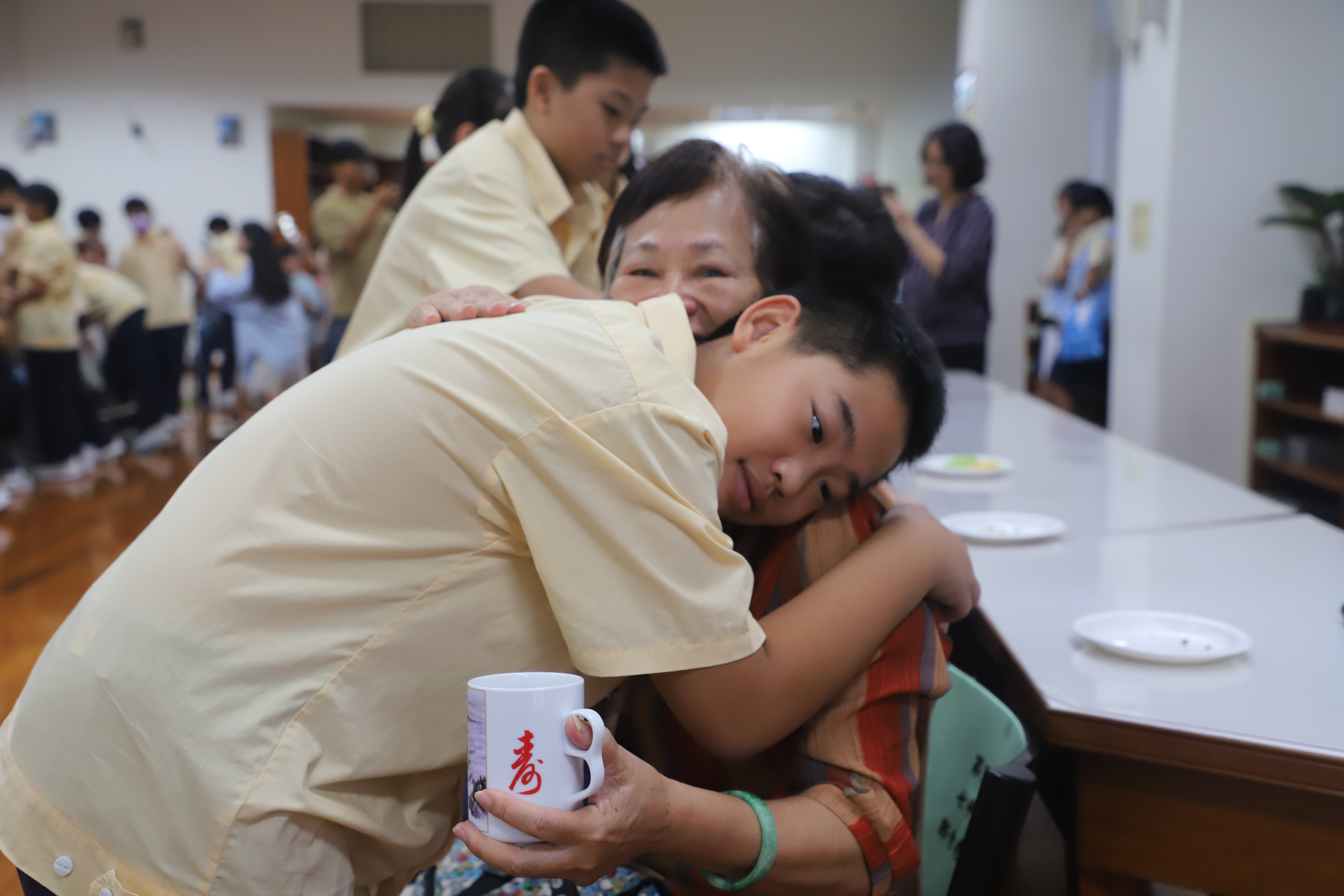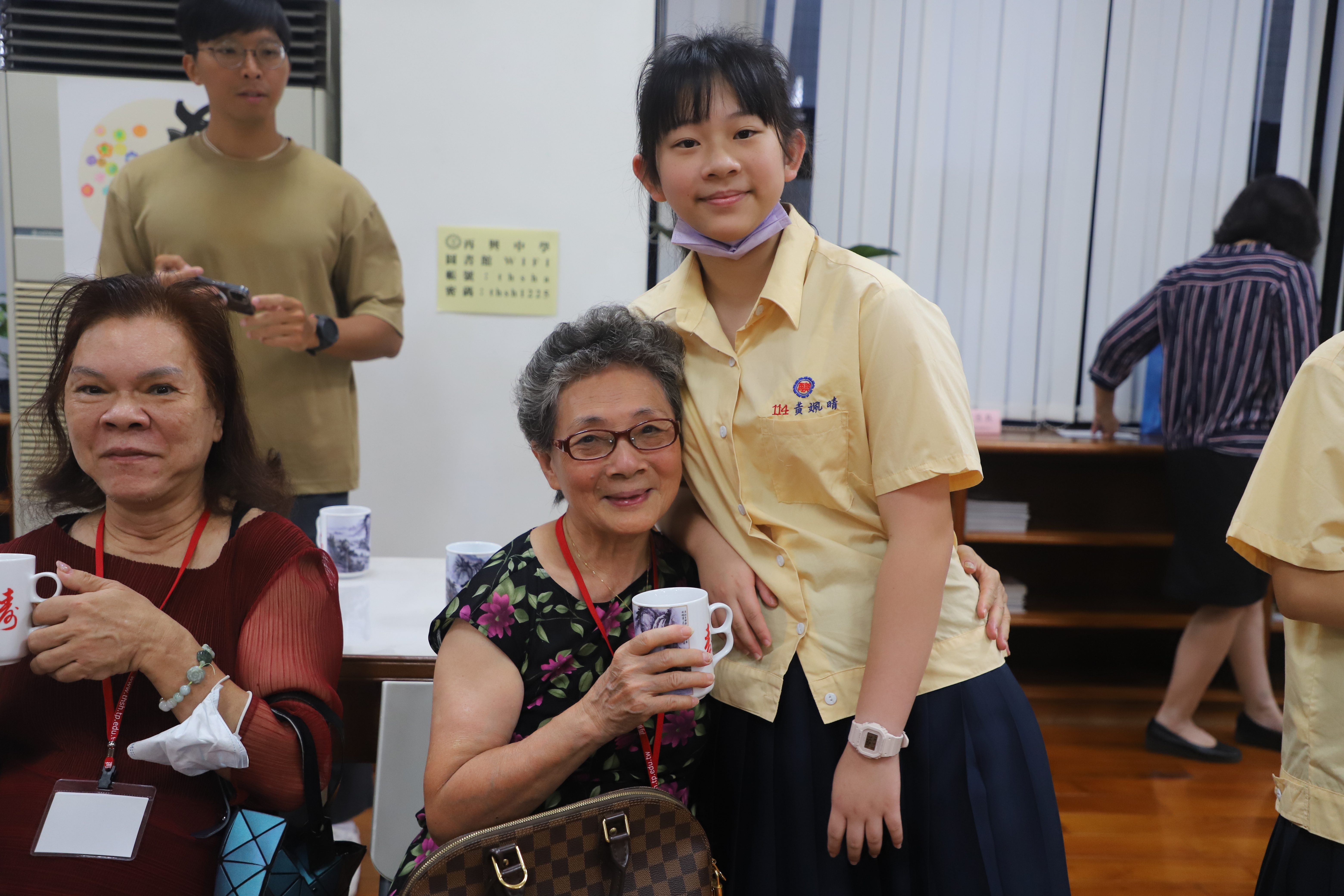 114學年度「祖孫心連心‧溫馨上學趣」 祖父母節活動報導 為慶祝一年一度的「祖父母節」,本校特於9月5日(五)邀請國中部七年級新生的祖父母參加「祖孫心連心‧溫馨上學趣」活動,今年共計46位阿公、阿嬤參與,在14位同行家長及30位孫子女的陪同下,歡喜蒞校參加活動及參觀校園。 本校自101學年度起開始辦理新生祖父母節活動,在活動的這一天開心迎接祖父母與孫子女一同來上學!今年依然希望藉由此活動能讓祖父母感受到孫子女已經上了國中逐漸長大懂事,也讓孫子女體會照顧長者的反哺責任,願祖孫之間彼此可分享生活,讓心靈更加靠近。孫子女向祖父母奉茶行孝親禮、擁抱祖父母,共享祖孫親情,其中有部分家庭的父母親也全程陪同,連繫祖孫三代情,期望孫子女從與祖父母的互動中培養尊親敬老的態度,進而更加成熟穩重、長大懂事。 再興大家長張東勇校長在致詞時歡迎並感謝祖父母蒞臨參與這個活動,正逢開學季,祖孫一起上學具教育傳承意涵,長者藉此分享他們的生命經驗及人生智慧,建立無年齡隔閡的社會。祖父母節的初衷是期望喚起晚輩對長者的重視,因此,「祖父母節」的對象不僅是祖父母,還有尊敬如祖父母的長者,期許每位同學都能發揮老吾老以及人之老的精神! 再興祖孫週的辦理目的不僅僅是增進甜蜜溫馨的隔代情誼,更希望以祖父母節為出發點,進而傳承前人的智慧及生命力,加上青少年的創意活力,讓世界更加美好,期待明年新生們祖孫再相會喔!