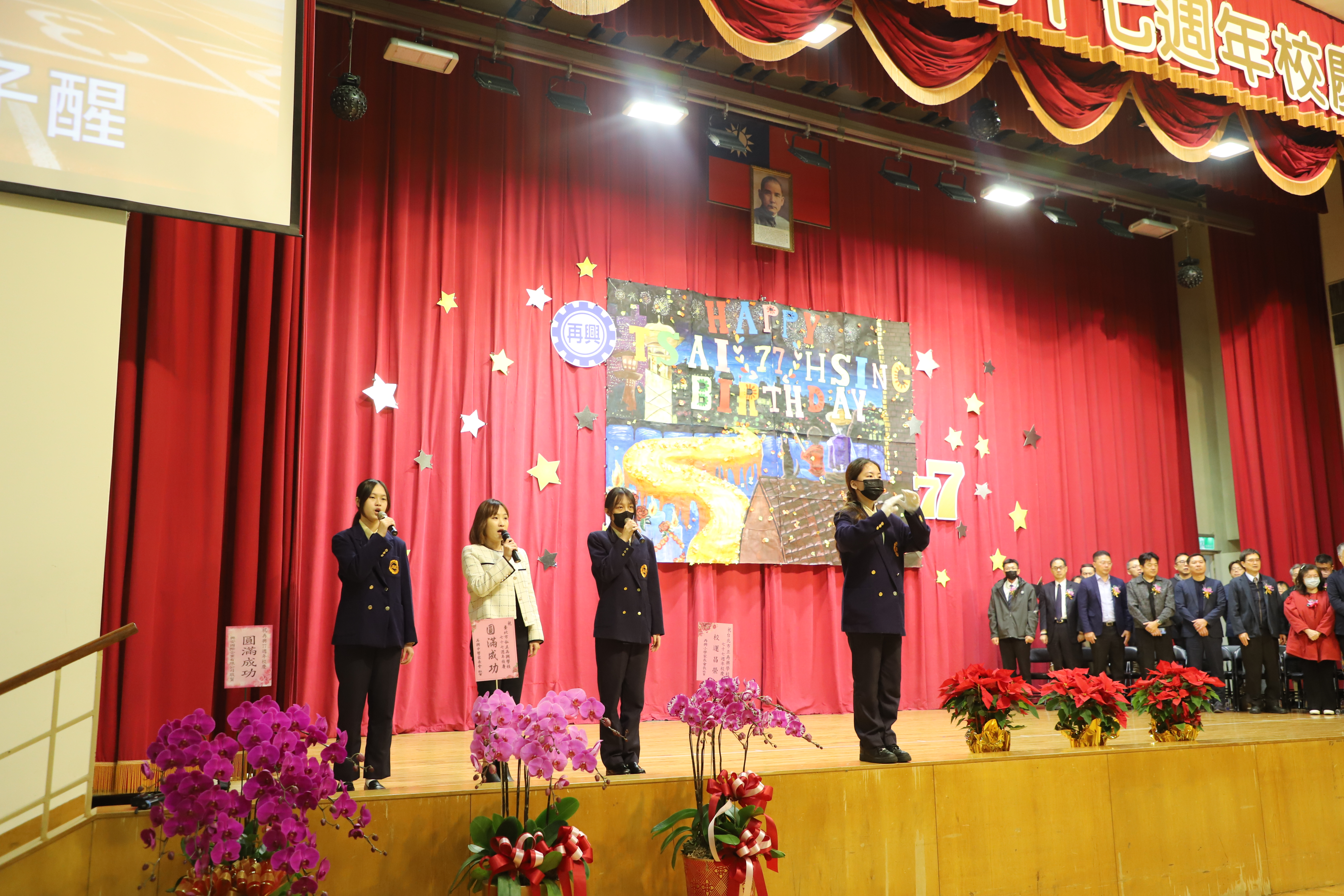 再興學校 77 週年校慶盛大登場:親師生齊聚,展現卓越教育成果 臺北市私立再興學校於今(25)日舉行創校 77 週年慶祝大會。典禮由董事會郝海晏董事主持,帶領中學張東勇校長、小學楊珩校長及幼兒園蘇瑞鴛園長,與各界貴賓、家長及校友共同見證再興學校跨越超過一甲子的光輝歲月。 產官學界貴賓雲集,共賀再興 77 載 今日大會貴賓陣容堅強,展現再興強大的校友凝聚力與深厚的社會聯繫。出席嘉賓包括教育部劉國偉次長(傑出校友)、東吳大學林利芝教授(傑出校友)、立法院羅智強委員,臺北市議會鍾沛君議員、耿葳議員(傑出校友)以及多位國小校長與家長會代表。劉國偉次長與多位議員於致詞中,除了表達對母校的感念,也對再興長期以來堅持卓越、全人教育的辦學精神給予高度肯定。 捷報頻傳:文武雙全的卓越表現 典禮中的「獻獎」環節成為全場焦點,呈現了再興學子在 114 年度傲視群倫的競賽成績: 小學部:展現強大的多元發展實力,連續七年蟬聯臺北市推動閱讀績優特優、連續十一年榮獲「微夢想的旅行」特優。此外,在全國啦啦隊錦標賽、教育盃高爾夫錦標賽、南區運動會及溫世仁作文比賽中,皆摘下多項團體冠軍與首獎。 中學部: 在交通安全、學術與藝能領域同樣亮眼。不僅榮獲臺北市金輪獎優等,在國中家政學藝競賽、五項藝術舞蹈比賽、教育盃高爾夫及民俗體育錦標賽中,均獲得團體組第一名或特優的佳績。 個人優異表現,點亮校慶光芒 除了團體獎項,個人表現亦極其突出。從硬筆書法、語文競賽、相聲比賽到田徑場上的破大會紀錄,再興師生展現了深厚底蘊。值得一提的是,謝安之、謝恆之、謝悅之三姐弟的作品更榮獲「2025 年第 39 屆日本東京國際發明展金牌獎」,顯見學校在推動創新發明教育上的成功。 精彩活動續航,歡樂校園氛圍 慶祝大會在全體齊聲高唱校歌中圓滿完成。典禮結束後,球場有充滿創意與活力的園遊會攤位,校園隨即轉為熱鬧的嘉年華園遊會模式。 下午在 B3 體育館舉行了精彩萬分的「國中部班際帶動唱」與「高中部班際啦啦隊」比賽。小學與幼兒園亦安排了豐富的系列活動,許多嘉賓、校友共同參與這場屬於全體「再興人」的年度盛會,再興78,明年見。
