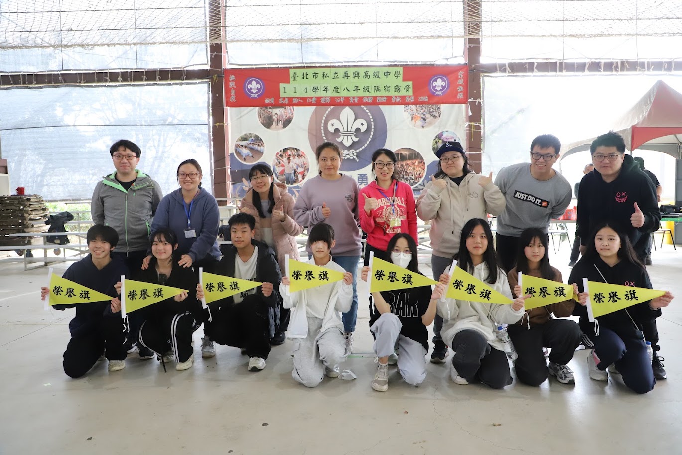 學務處為增進學生戶外活動興趣與技能、倡導健康休閒生活及落實綜合活動教學成效,特於1月29-30日安排前往新竹小叮噹科學園區舉辦國中部八年級隔宿露營活動。1月29日(四)八年級共309位同學在學務處向芳誼主任帶領下,於早上7:50自學校出發前往位於新竹小叮噹科學園區營地展開兩天一夜露營活動,今年主題為三國爭霸,特將班級分屬魏、蜀、吳三國,透過兩天的任務闖關,奪取天下霸業!次日下午4:30結束活動平安返抵學校。