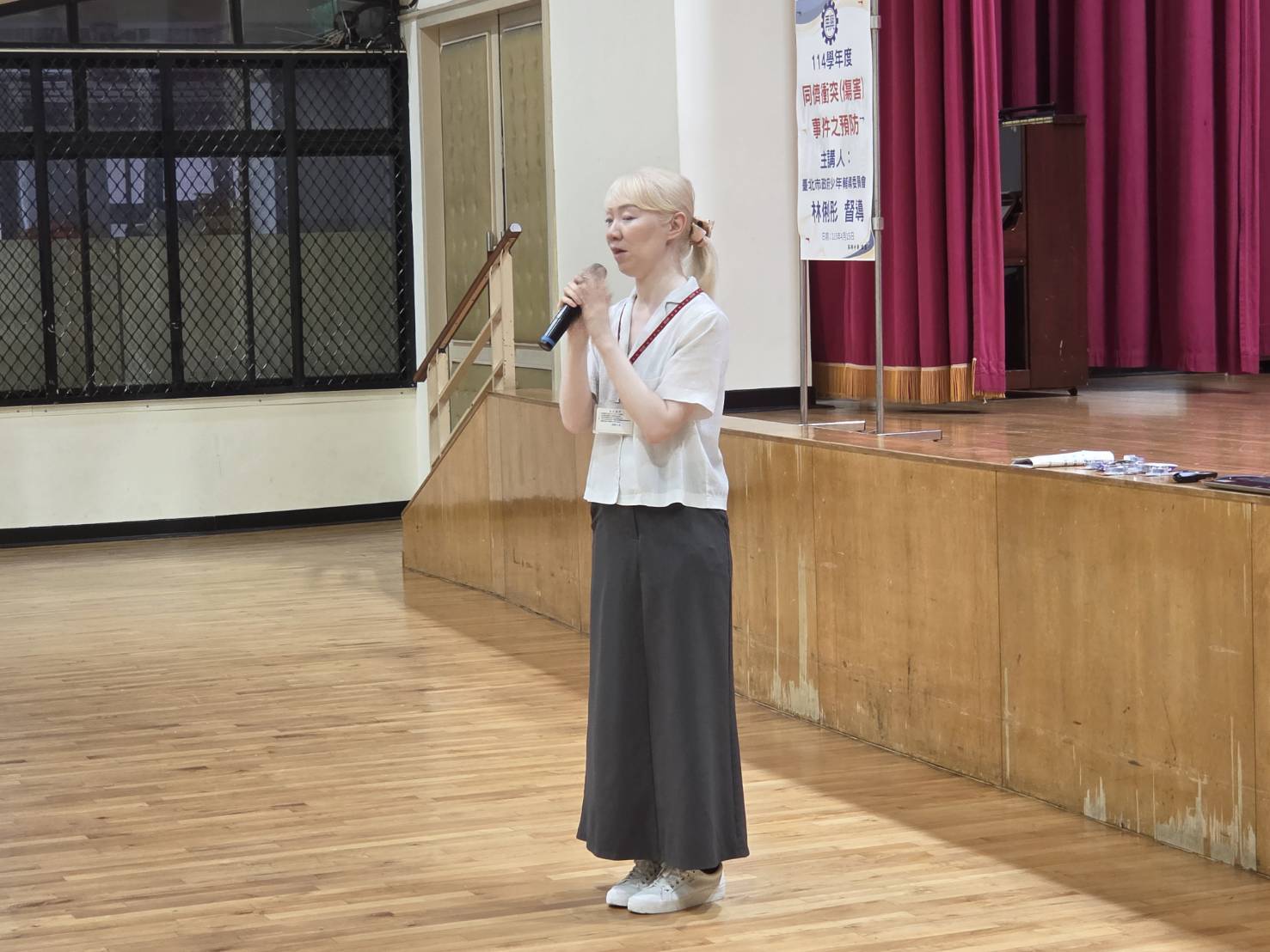 4月15日第10週國中部週會由七年級同學參加。本次週會特別邀請臺北市政府少輔會林俐彤督導蒞校,進行同儕衝突(傷害)事件預防宣導。
