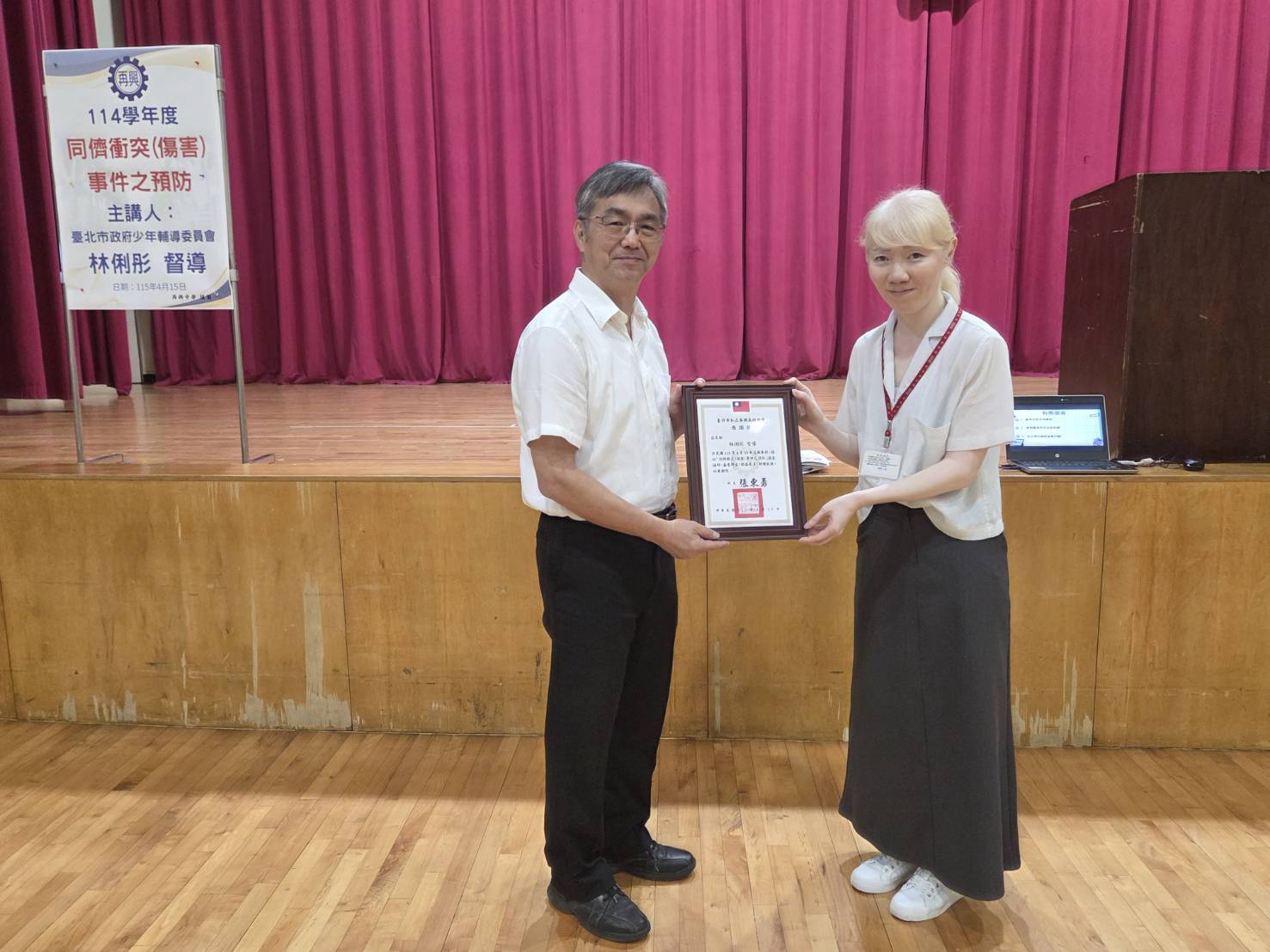 此外,活動中亦安排有獎徵答,加深同學對宣導內容的印象,現場氣氛熱絡。最後由校長頒發感謝狀,為本次宣導活動畫下圓滿句點。
