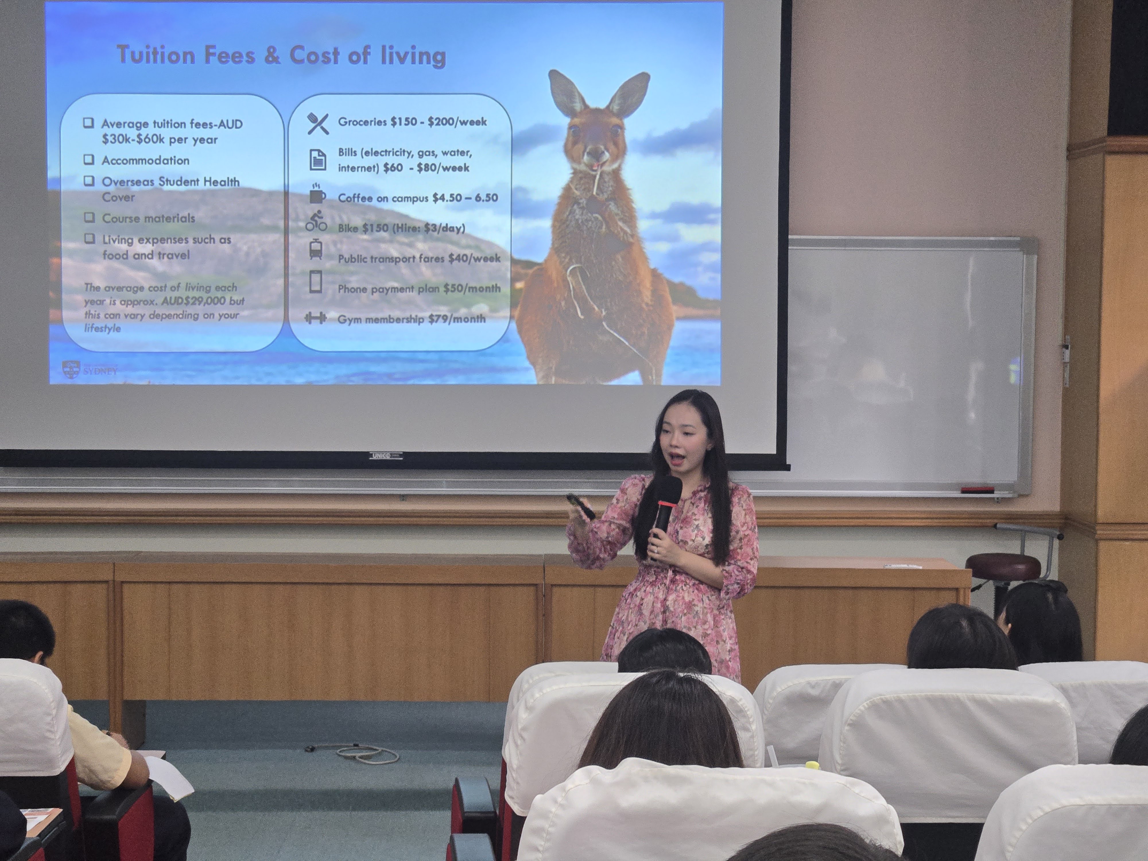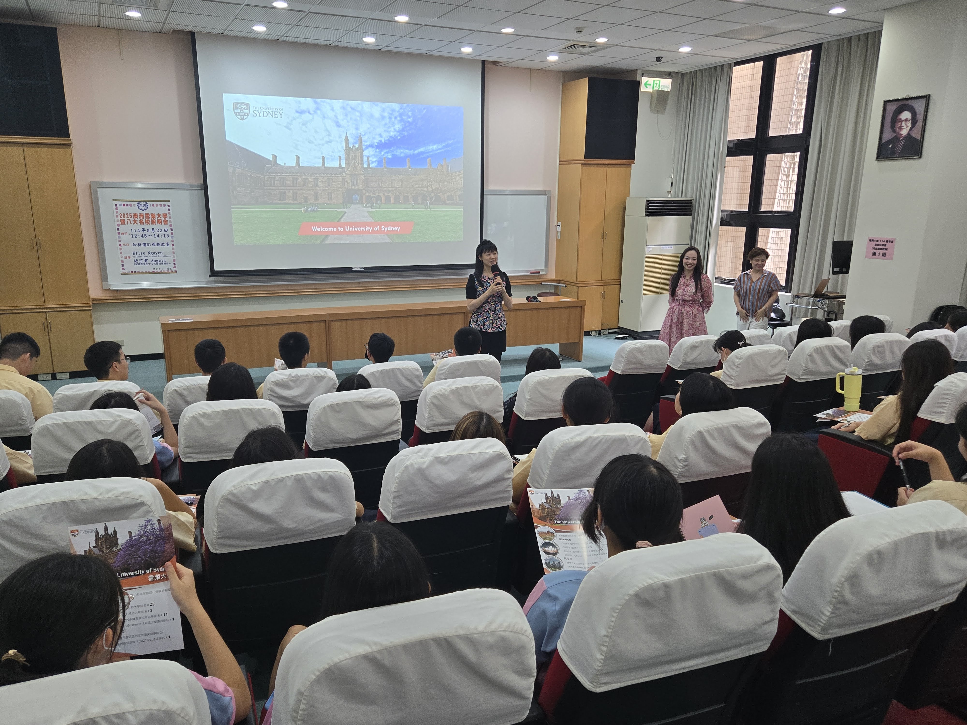 本校9月22日舉辦澳洲雪梨大學暨八大名校說明會,邀請澳洲雪梨大學國際招生部顧問Elise Nguyen與ISC國際學生中心校際關係聯絡人施竺君Angela一同分享澳洲升學資訊,本場說明會共有50位高中部學生參加,內容主要涵蓋三部分:澳洲雪梨大學介紹與申請說明、澳洲八所大學概況與入學要求、學生問答時間。 2025澳洲雪梨大學暨八大名校說明會 活動報導