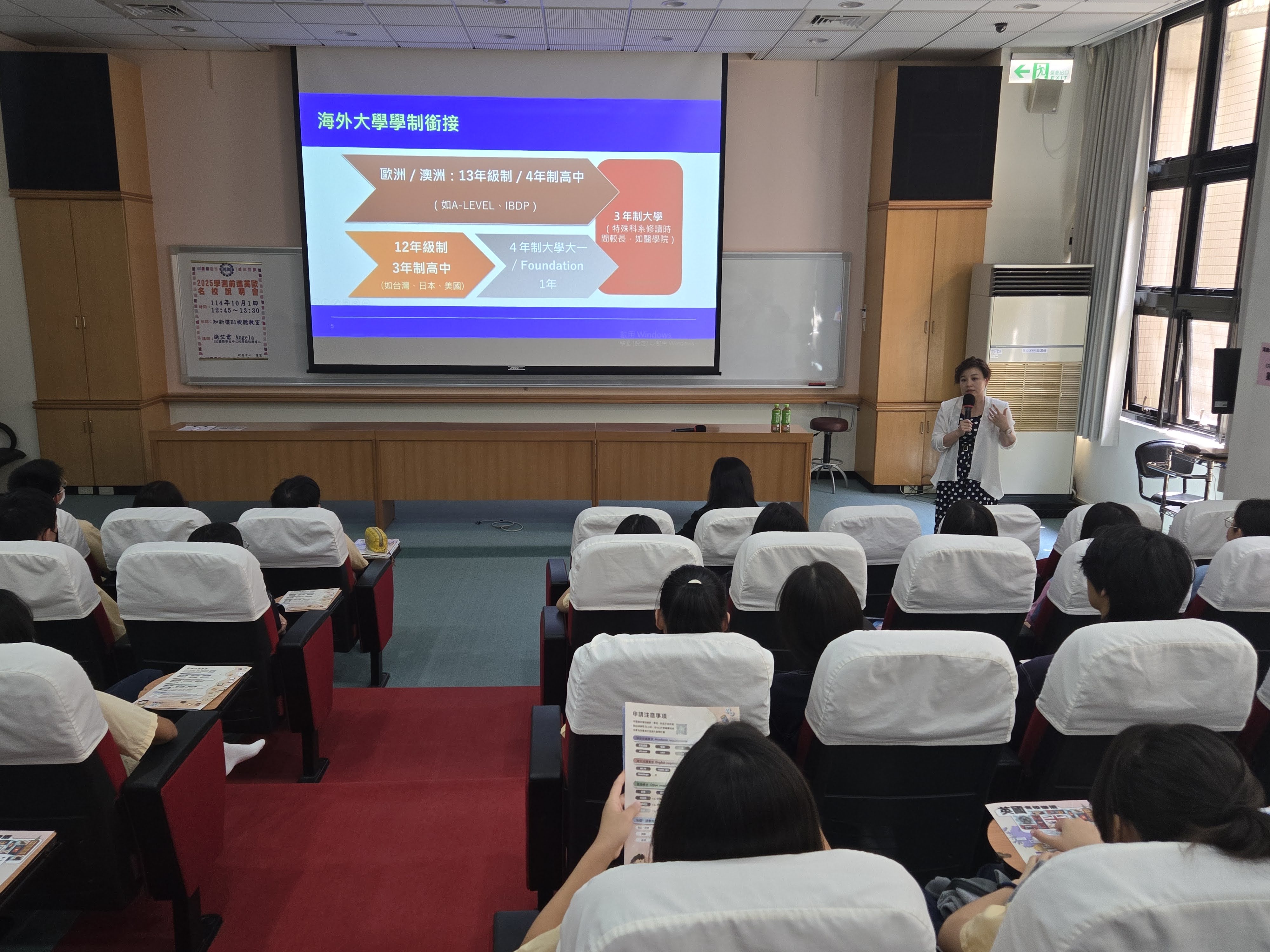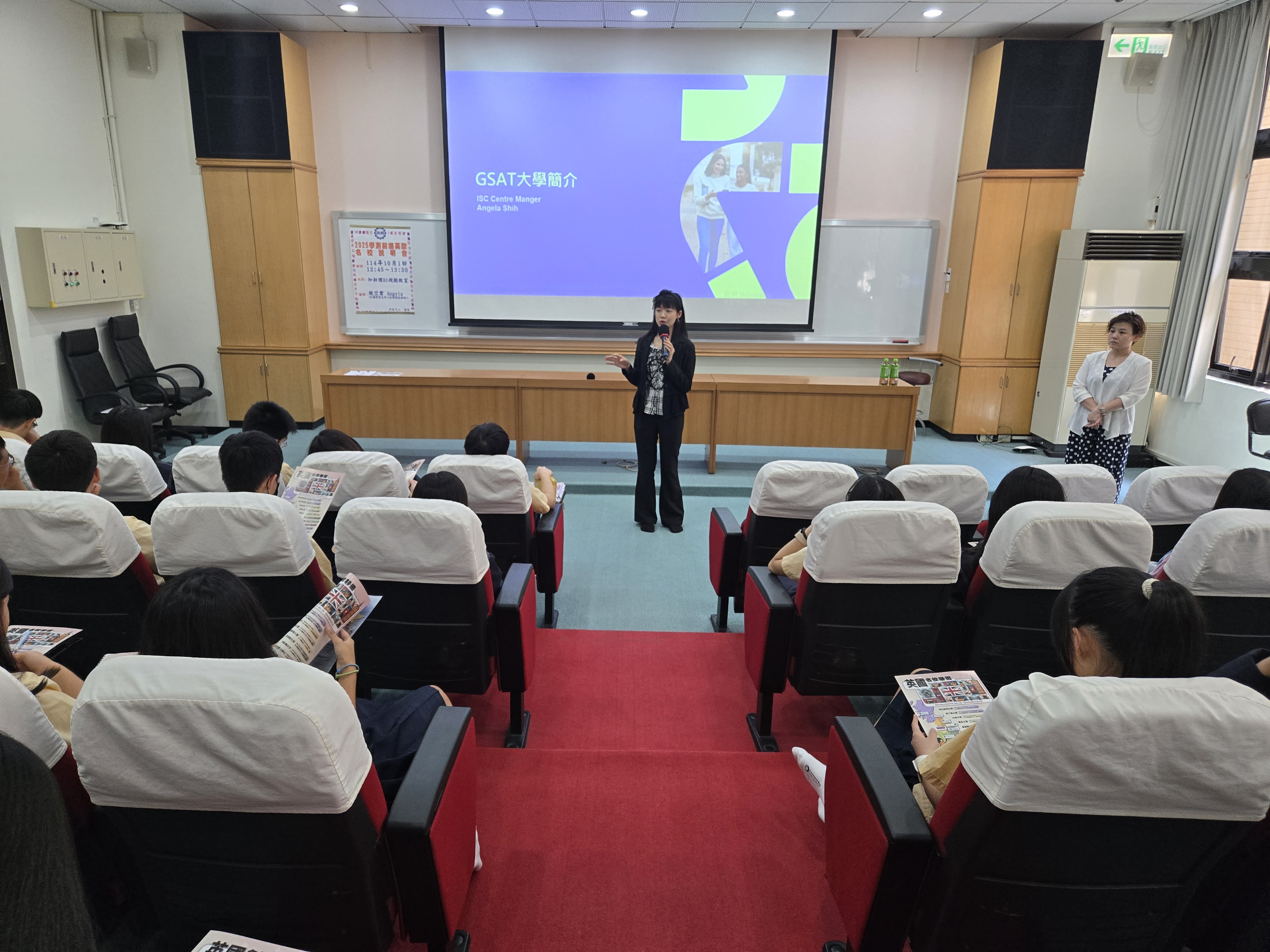 活動一開始,Angela先針對歐洲學制與國際預科課程進行說明,並強調申請英歐大學時,學術成績為主要考量,課外活動則為輔助,提醒學生須兼顧三年學業成績,並妥善規劃時間以準備申請文件。隨後,她深入解析雅思與托福英文檢定,說明不同科系所需的成績區間,並教授如何看大學排名及選校時應注意的重點。後半場Angela展示英國地圖,逐一介紹各區域知名大學,包括諾丁漢特倫特大學、皇家哈洛威學院、薩里大學、卡地夫大學、里茲大學、雪菲爾大學等。最後,Angela勉勵同學善用資源並及早規劃,並提供ISC國際學生中心的聯繫方式,鼓勵學生主動諮詢與準備。