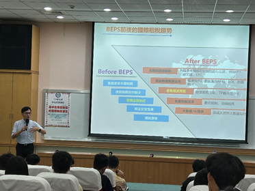 本次專題演講中,教授以「三環馬戲團」精妙設喻,並且善用武俠小說的元素促進理解。短短的兩小時當中,以深入淺出的方式,使聽眾對全球的稅改潮流有完整的認識,相信同學們都受益良多。