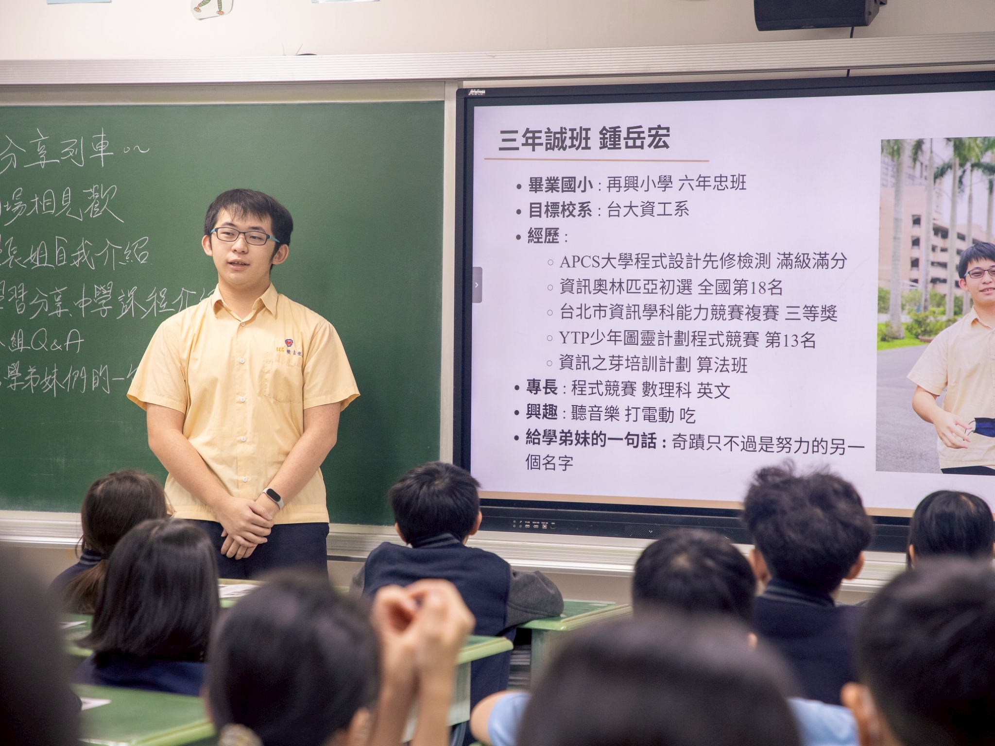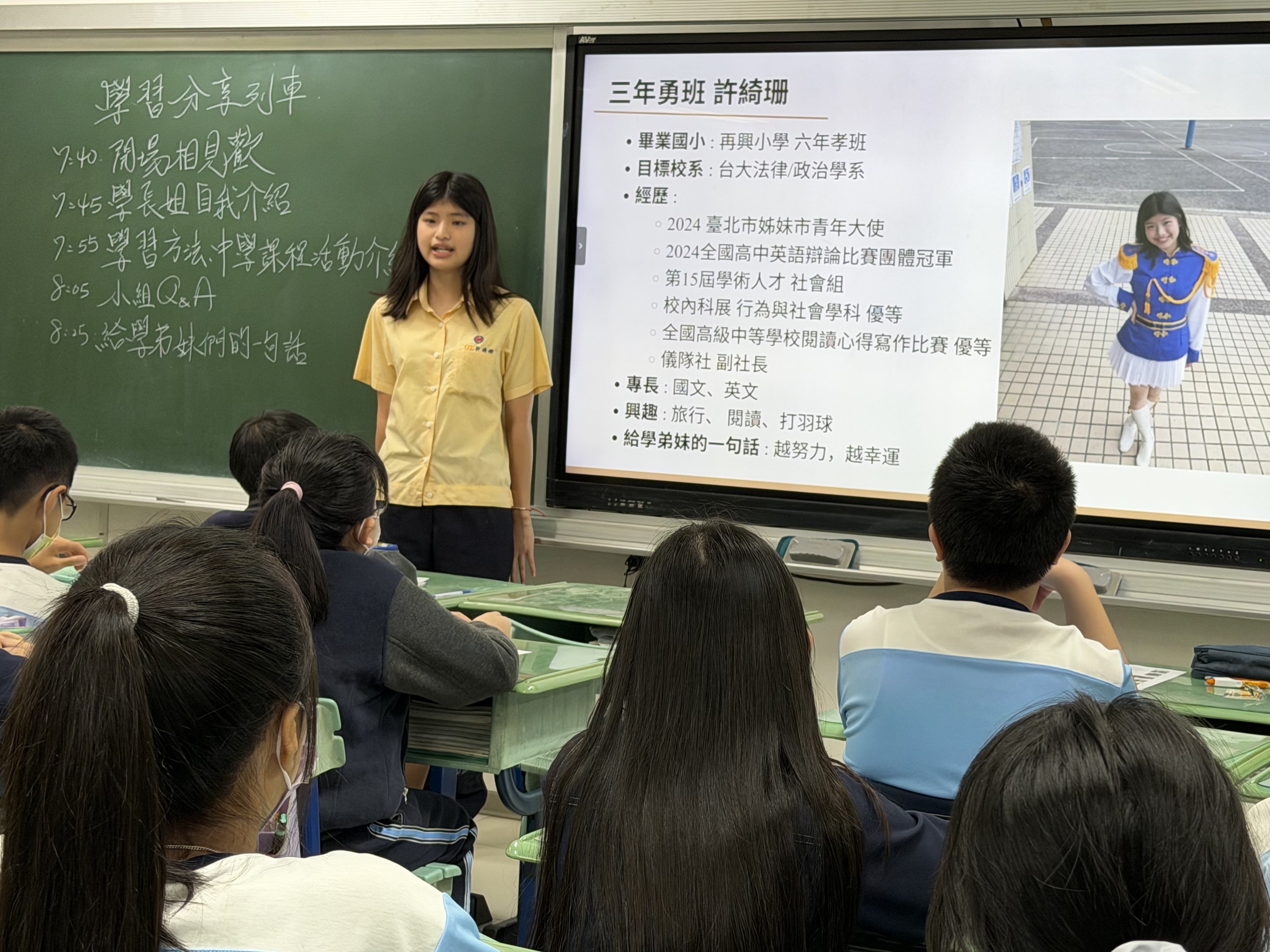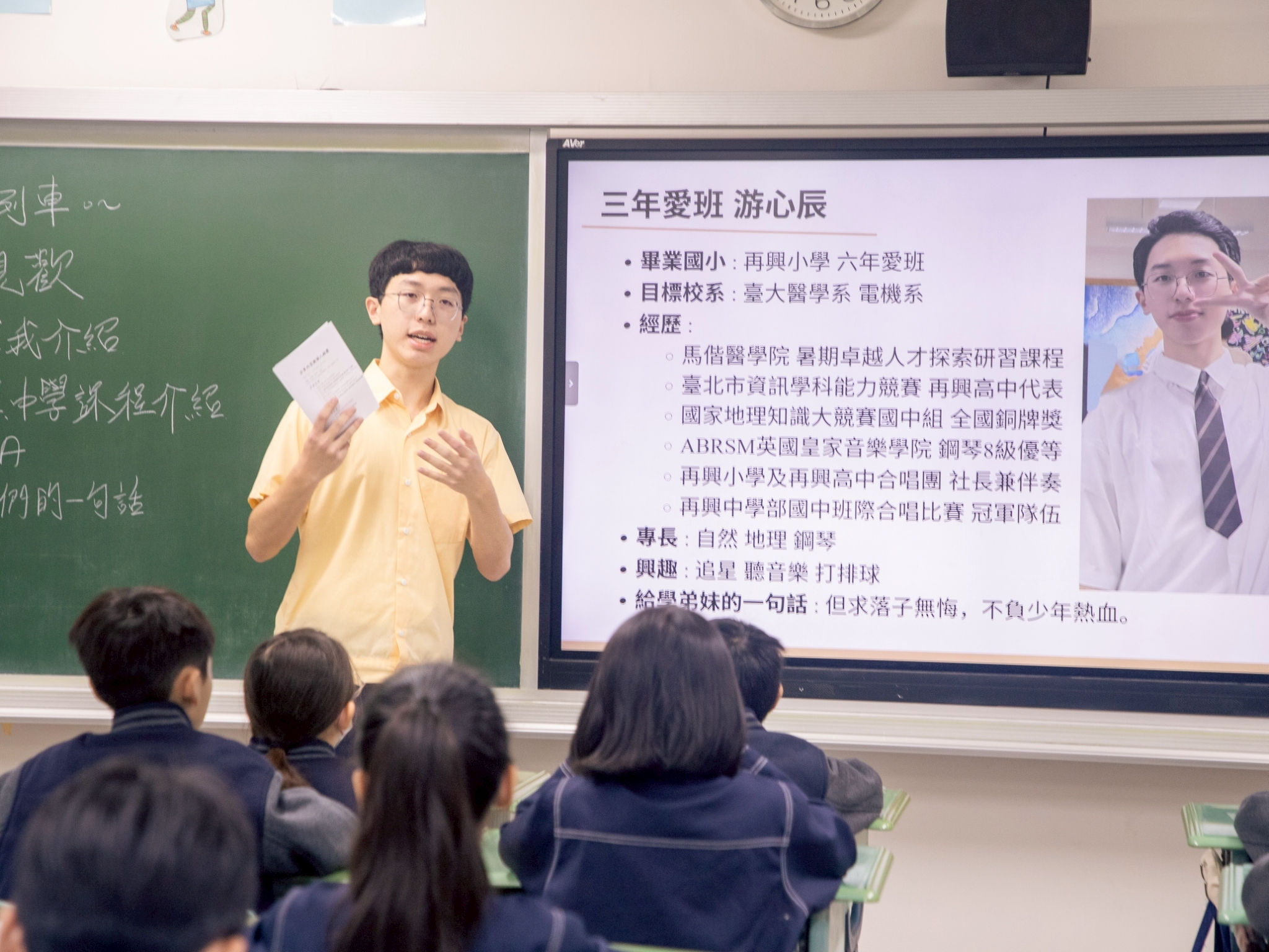 由小學部直升的高三愛班游心辰與高三勇班許綺珊同學基於傳承再興精神的理念,偕同高三愛班陳宇菲、李宥諺,高三勇班黃千翡同學,從11月11日起應小學部輔導室邀請,籌辦帶領高中部學生至再興小學六年級各班進行再興大校園學習分享,參與此次分享活動的同學共計四十位。 為讓活動順利進行,負責統籌學習分享列車的幾位高中部學長姐,事先與小學部輔導室郭主任討論活動應注意事項。每個同學除了需要練習以PPT進行三十秒鐘的自我介紹,並於彙集小六各班學弟妹們的提問後,根據自己的興趣、專長分組,討論如何分享進入國中後在學習、課程、活動與生活上的經驗。 活動一開始先由入班的高中部同學逐一介紹自己就讀的小學、興趣、專長、經歷與未來想就讀的大學、科系,接著是游心辰與陳宇菲同學與小六學弟妹分享升上國中怎麼學習最有效?許綺珊與黃千翡同學介紹國中部課程活動,提供學弟妹未來國中生活包含課業成績與參與活動的建議。不管是由小學部直升的再興寶寶,抑或透過申請入學就讀中學部,學長姐們提及自己在再興這些年的各方面的進步,尤其要如何訂定目標與達成過程中所需要的努力更讓學弟妹們獲益匪淺。此外,他們也告訴學弟妹們除了學業成績外,中學的許多活動、課程要積極參與才能讓自己有更全面的成長。 分組諮詢時,只見小六學弟妹們認真提問,學長姐們因為活動前針對各班的提問準備充分,都能順利解答他們對於國中生活的疑惑與提供各項因應的對策。活動最後由學長姊們送給學弟妹們一句祝福勉勵的話,也是對自己的期許。高中部同學們透過此次活動除了表達對學弟妹的關心之外,每個班級分享結束後都會立即檢討,尤其小學郭主任的建議更讓參與的同學如醍醐灌頂。藉由一次次的分享及對談,同學們也學得不少溝通的技巧,精進表達與解決問題的能力,更確信自己未來的目標,對於將來的大學甄選入學增添許多信心,小六的學弟妹也透過手寫的回饋卡來向大哥哥大姊姊們表達感謝與祝福之意。透過大校園學習分享的傳承,不但在學習中注入暖流,同時展現出再興大家庭「大手牽小手」的情誼! 此次參與學習分享列車活動的高中部同學: 活動相片連結