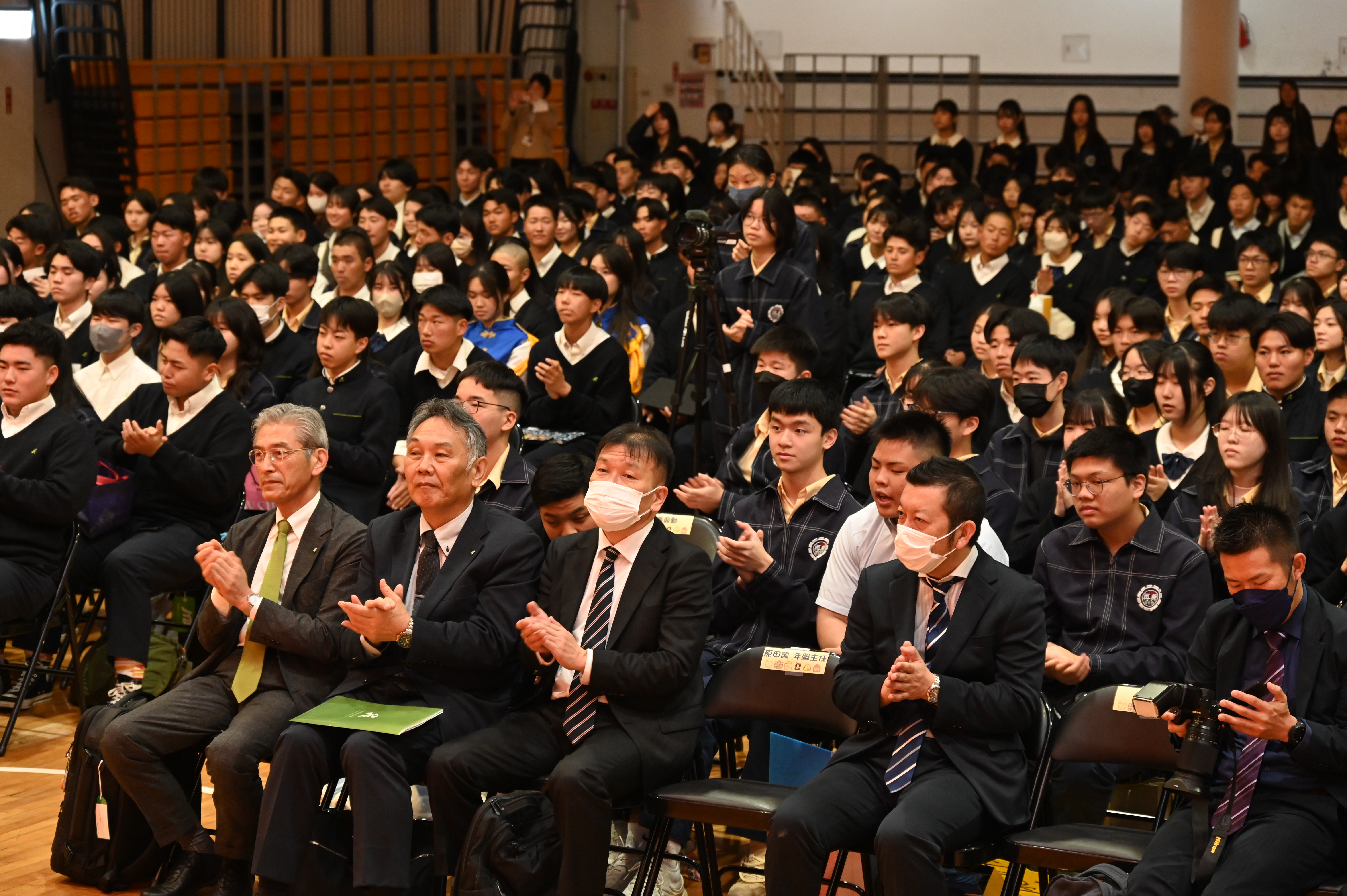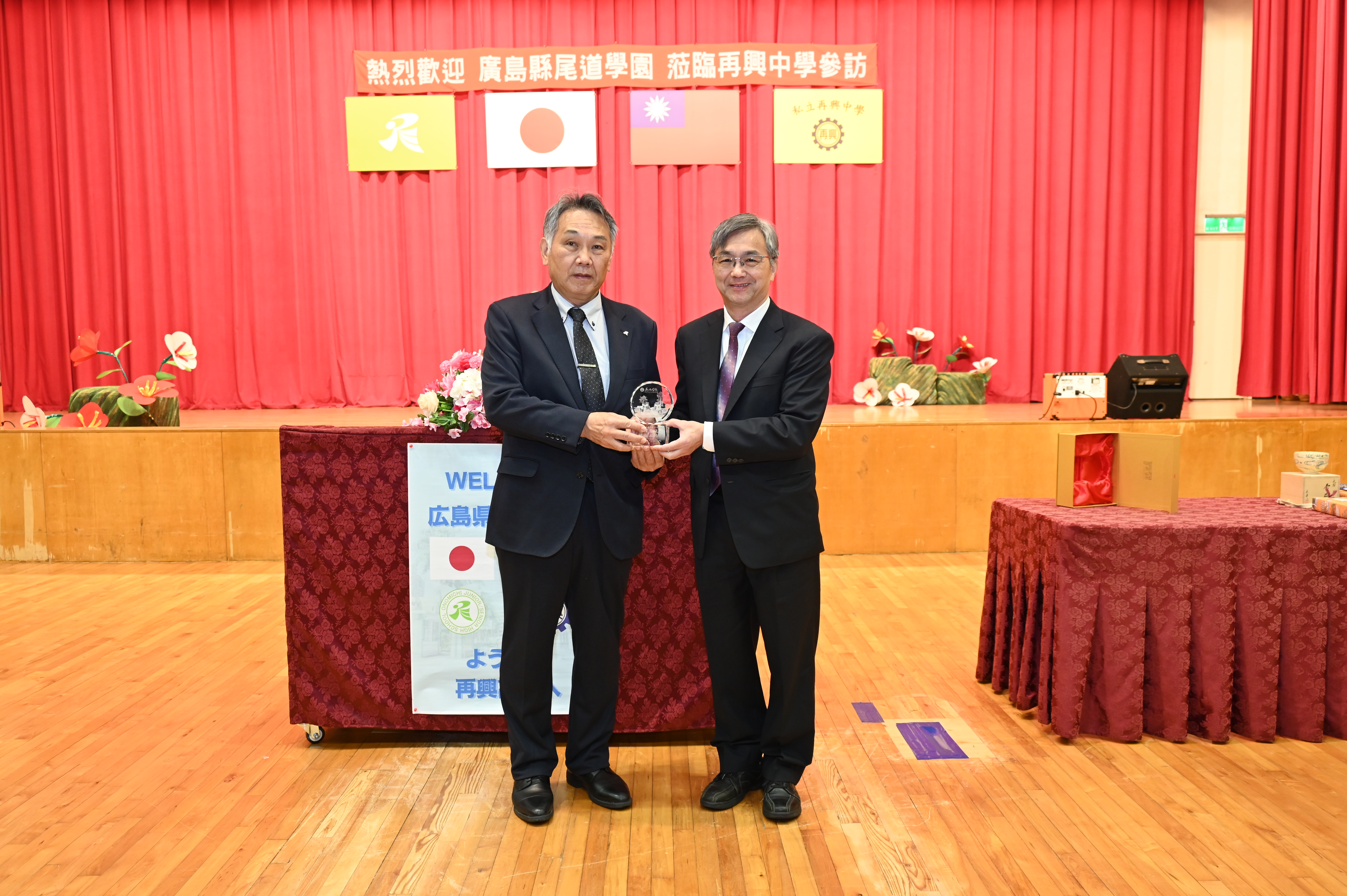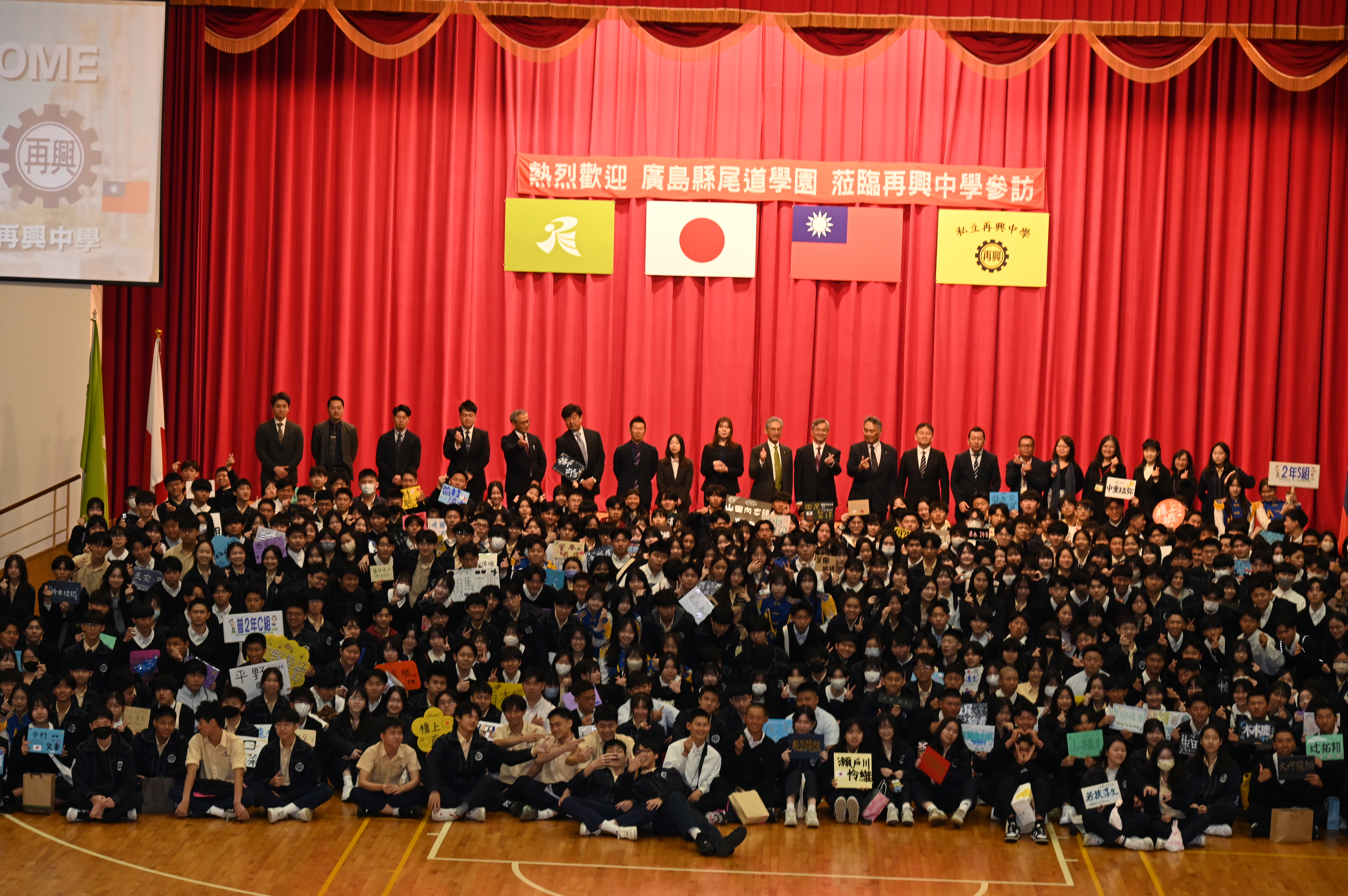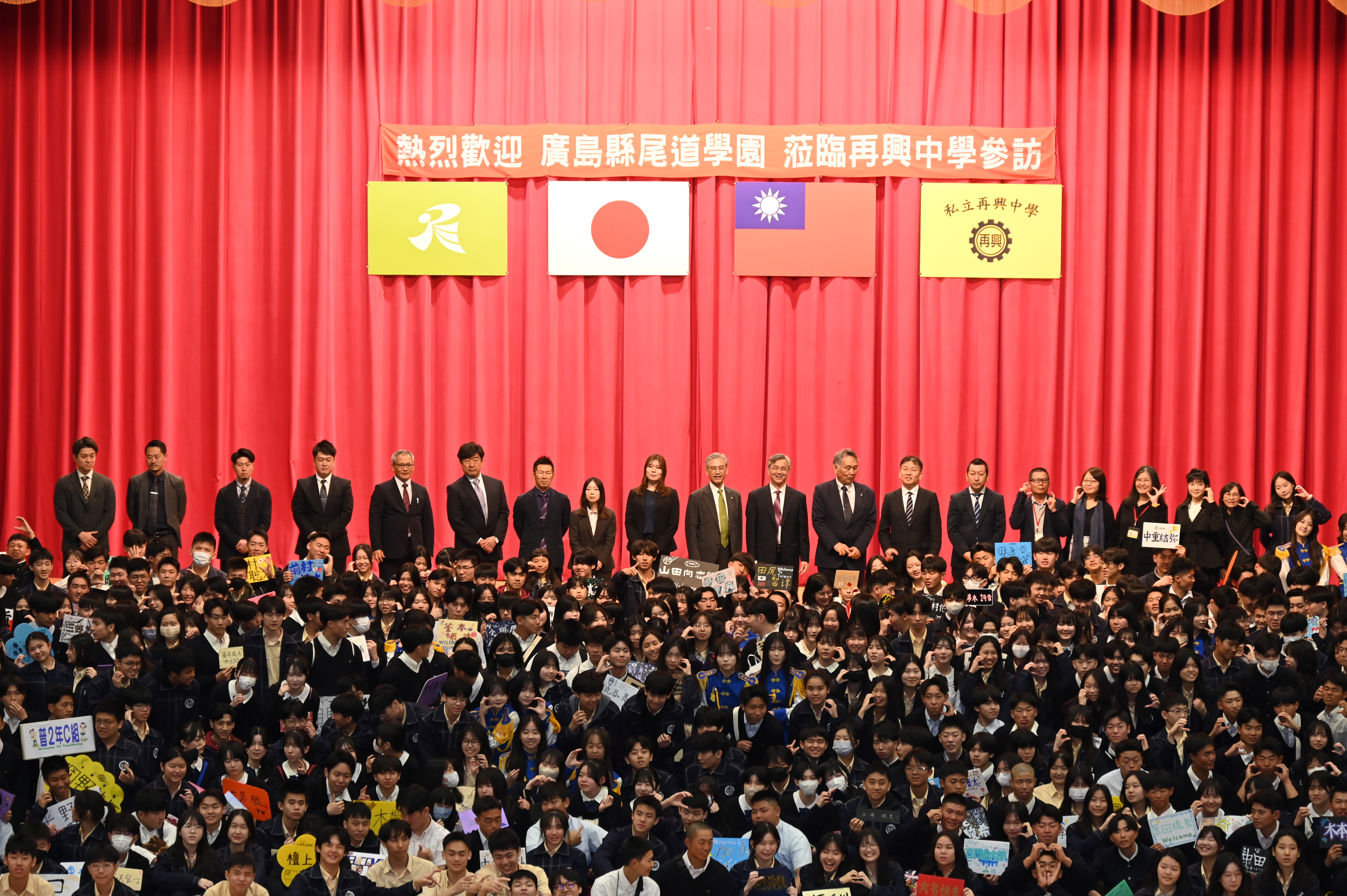 2026年3月6日,本校迎來了多年情誼的日本姊妹校——廣島縣尾道學園。由加藤理事長與山元隆介校長率領共217位師生蒞校,進行為期半日的深度文化交流,展現兩校堅實的教育合作夥伴關係。 交流活動於上午9時20分拉開序幕,再興中學張東勇校長於歡迎會上表示,兩校穩定的交流活動,不僅深化了教育合作,更是台日文化互動的重要橋樑。隨後,再興學生代表呂丞瀚與尾道學生代表檀上直生分別致詞,兩位同學皆強調,儘管語言不同,但身為高中生對未來的期待與熱情是共通的,盼能透過互動建立長久友誼。 歡迎會中,兩校學生展現多才多藝的一面。再興民俗舞蹈社以「芳菲繡春」呈現傳統藝術之美,儀隊則以精湛槍法展現氣勢;尾道學園學生亦帶來充滿文化的劍道表演,現場氣氛熱烈;壓軸的再興熱音社,更特別為學伴們準備了兩首日文歌曲,全場陶醉在演唱會般的氛圍中。活動的高潮在於「一對一接待」與「交換禮物」,202位再興學生與日本夥伴漫步校園,參觀學校各運動場館及專科教室,並互贈具有意義精心準備的紀念品,深化情誼外,也留下難忘回憶。 此次參訪在溫馨的大合照後圓滿落幕。短暫的相聚不僅增進了學生的國際視野,更在彼此心中種下友誼的種子,為兩校未來的交流續寫美麗篇章。