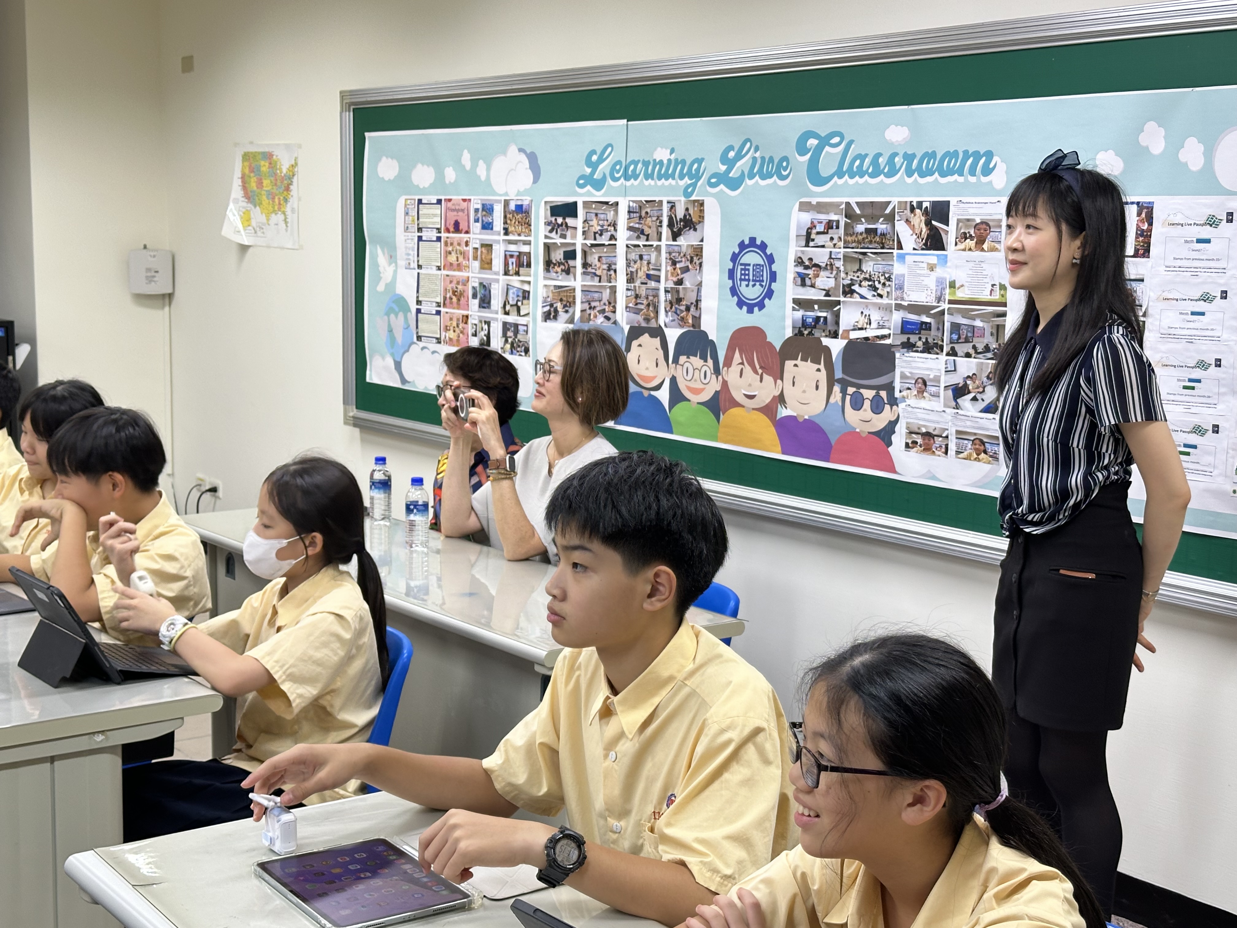 114年10月8日上午,加拿大哥倫比亞國際學院Columbia International College(以下簡稱CIC)創辦人Pauline Kan與執行董事Joanie Kan蒞臨再興學校參訪,CIC是加拿大規模最大的私立寄宿高中,成立超過40年,提供優質且多元的中學及大學預修課程,吸引來自100多個國家學生就讀。 當天由張光正董事長帶領再興中小學團隊接待貴賓,與會師長包含張東勇校長、楊珩校長、李秉容主任、楊思萱主任及楊茹婷老師,貴賓抵達後,先到中學圖書館欣賞朱秀榮校長的美麗畫作、戲服等珍藏文物,並觀賞再興學校簡介影片,聆聽課程介紹簡報,對校園環境、特色課程及活動有初步的認識。 接著參觀校園,第一站前往幼兒園,在蘇瑞鴛園長及教師團隊的陪同下,與活潑的孩子們互動,當天適逢國慶遊行,孩子們盛裝打扮,見到訪客都開心比出愛心手勢歡迎。第二站前往小學,到圖書館體驗SEL情緒教育特展,感受溫馨舒適的閱讀空間,走訪小學數位雙語課程,感受語言、文化、科技交織的多元學習氛圍,步行至高爾夫球練習場,感受豔陽下揮桿練習學生們的熱血,最後一站進入中學數位雙語教室,感受國中生使用平板彙整學習檔案、閱讀電子書的認真投入。兩位貴賓在參訪過程與本校師長相談甚歡,對再興的課程與學生讚許有加,雙方不僅對兩校有更多認識,也期盼未來能有更深度交流的機會。