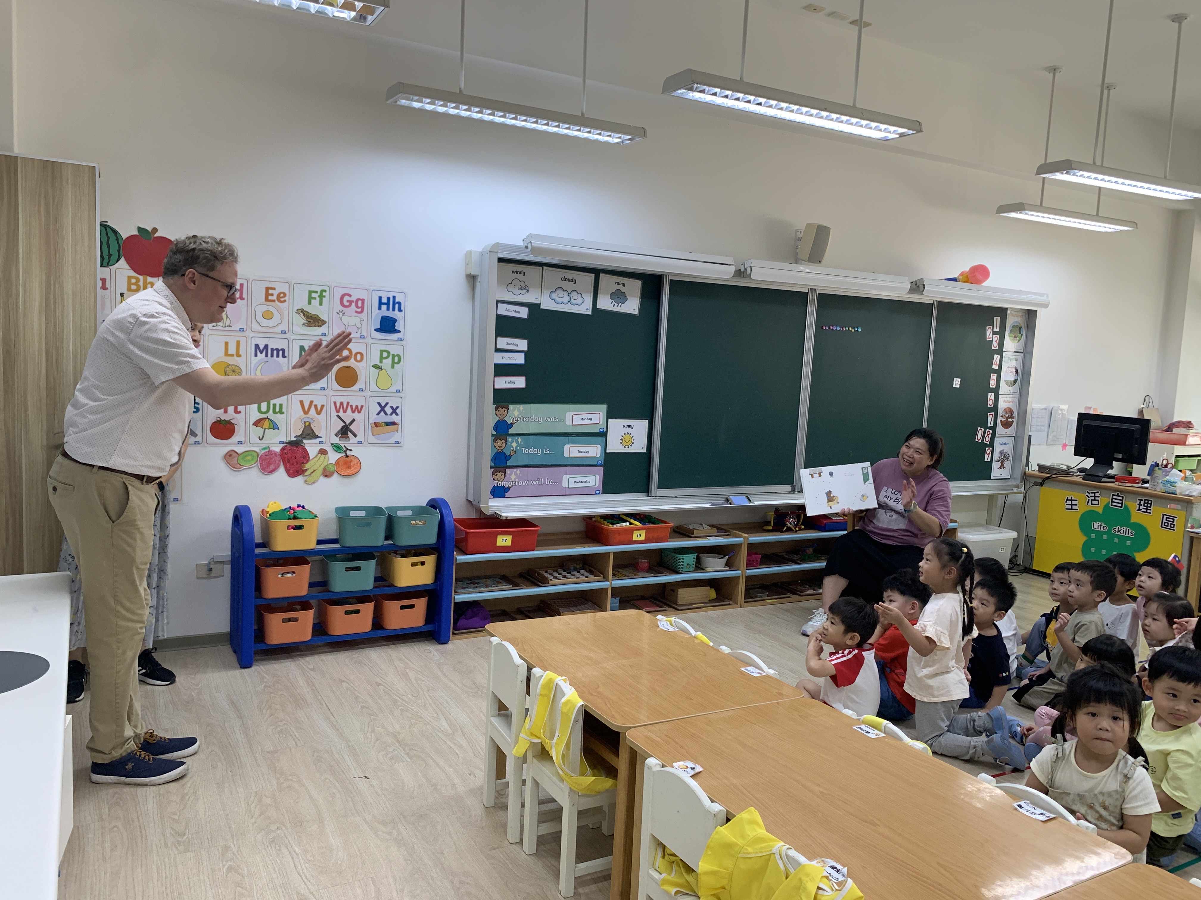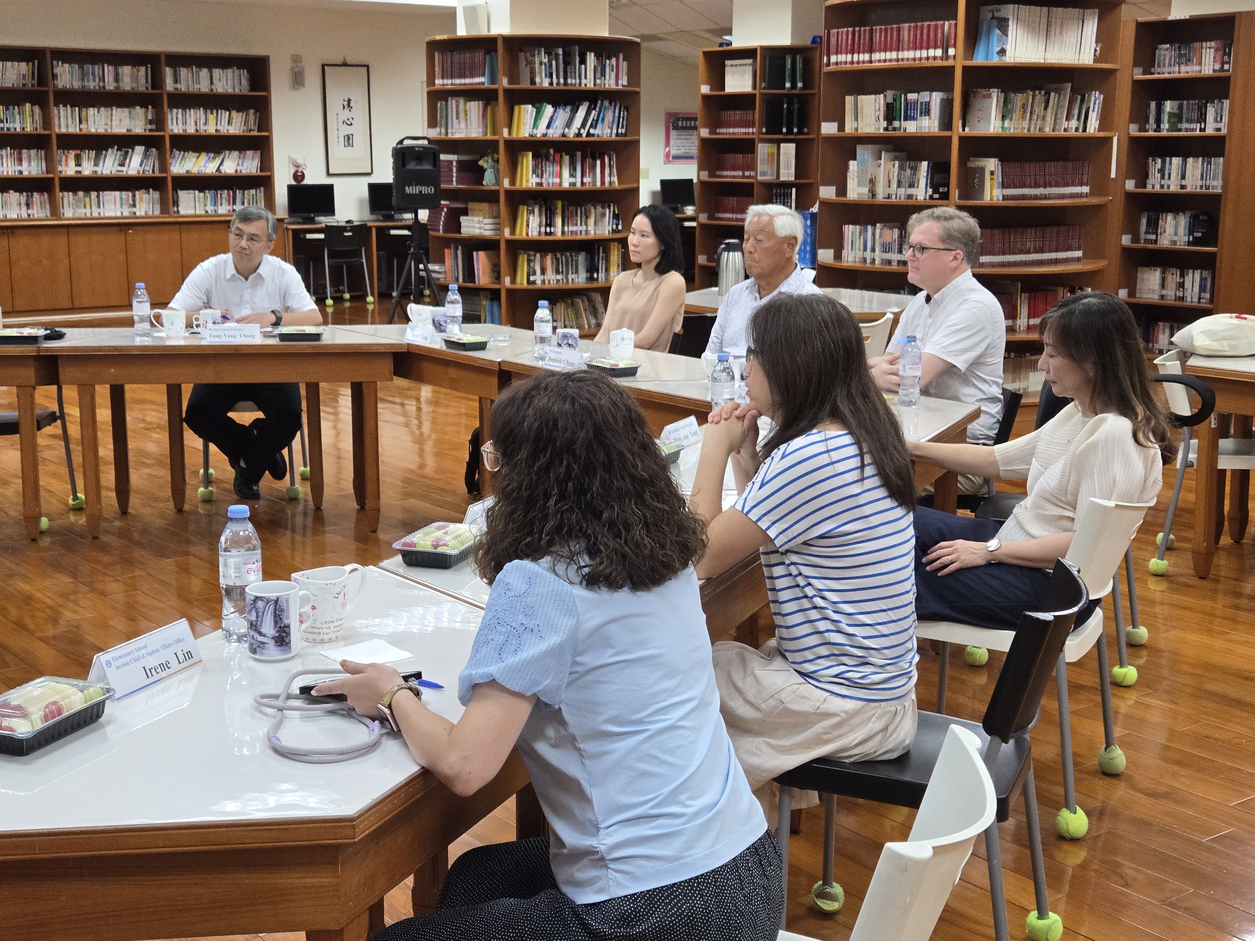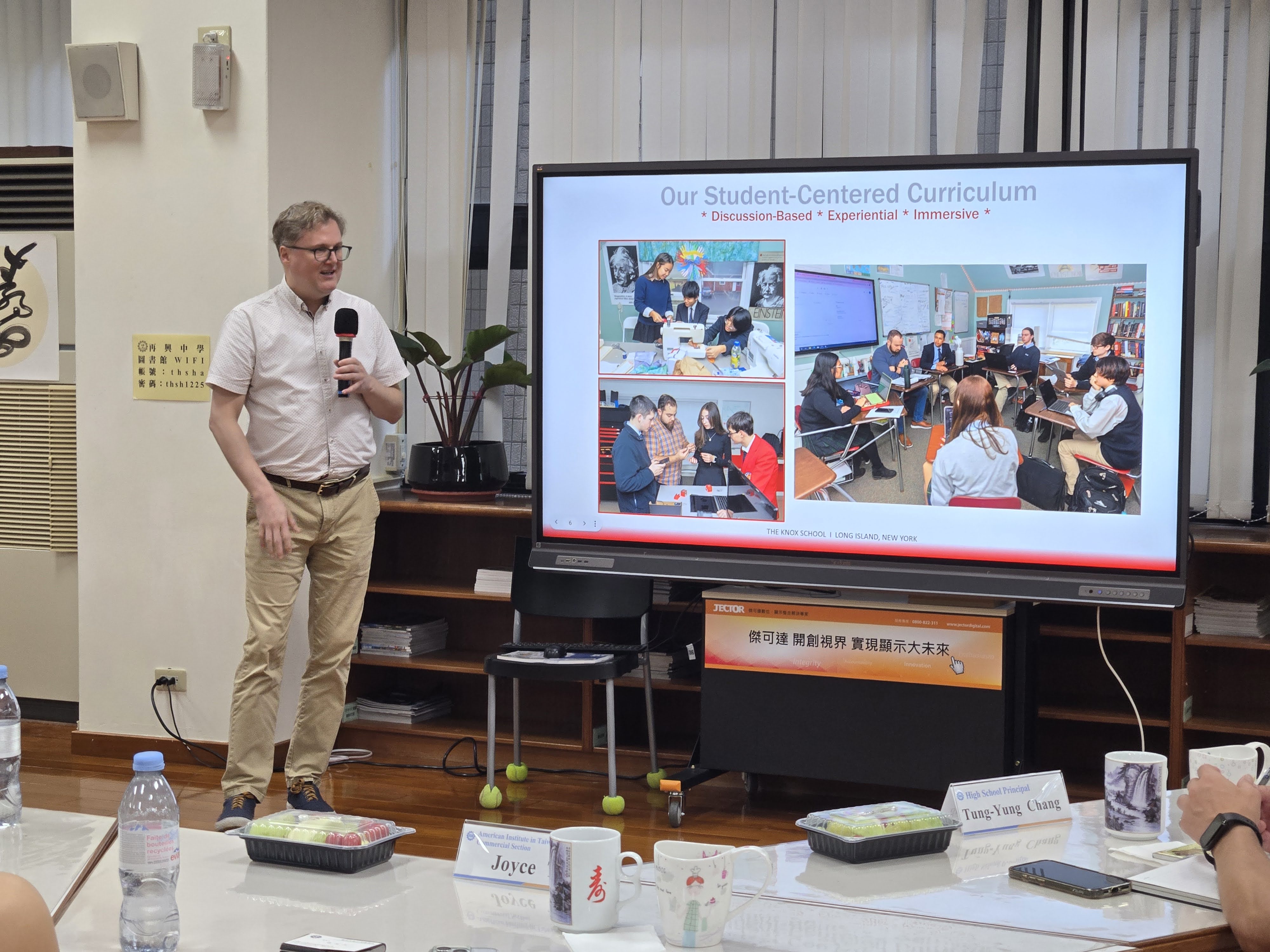 114年10月9日上午,美國紐約諾克斯學校(the Knox School)招生主任Joshua Pelkey蒞臨再興學校參訪,諾克斯學校是一所位於紐約長島的私立寄宿高中,成立超過40年,校園環境遼闊優美,甚至設有馬場及牧場,為6~12年級學生提供多元的中學及大學預修課程,以及豐富的體育及課外活動。 當天由張光正董事長帶領再興中小學團隊接待Joshua,與會師長包含張東勇校長、楊珩校長、李秉容主任、葉晶瑩主任及林雅鳳組長,Joshua抵達後,先到中學圖書館欣賞朱秀榮校長的文物,包含水墨畫作、京劇戲服等,並觀賞再興學校簡介影片,聆聽中學課程介紹簡報,對再興的環境、特色課程及活動有初步的認識。Joshua也詳細介紹諾克斯學校的校舍、歷史、課程安排及輔導規劃,該校旨在協助學生探索自我,進而找到未來的科系及職涯方向,因此非常重視五育培養及課程彈性,兩校在教育理念及方向上有諸多共同點,師長們也在簡報過程中熱絡的提問對談。 接著參觀校園,第一站前往幼兒園,蘇瑞鴛園長及老師們熱情的迎接,帶Joshua到教室裡和活潑的孩子們互動,用簡單的英文對話寒暄,第二站抵達小學圖書館,感受明亮溫馨的閱讀空間及互動式SEL特展,最後回到中學圖書館享用午餐,兩校師長相談甚歡,也期盼接下來能夠和諾克斯學校有近一步合作的機會。