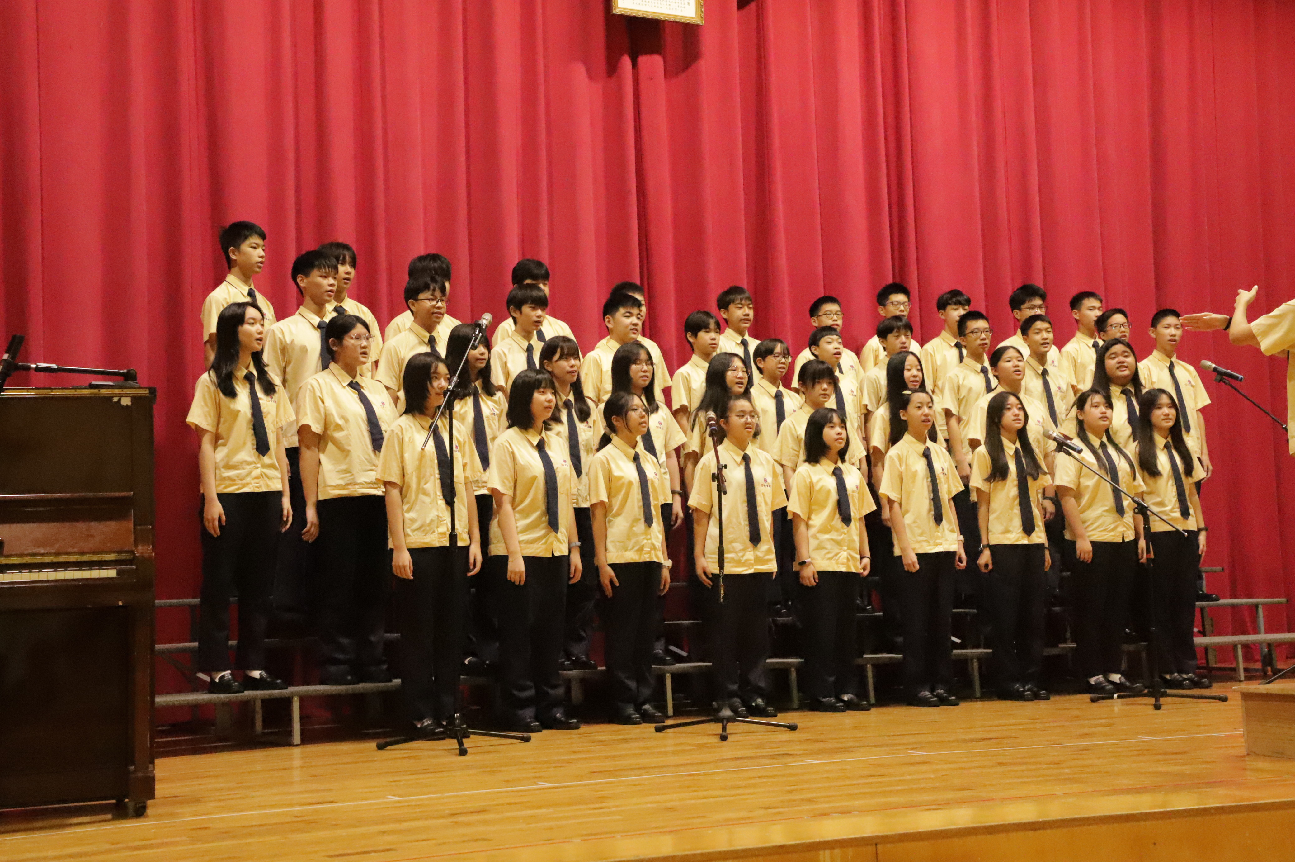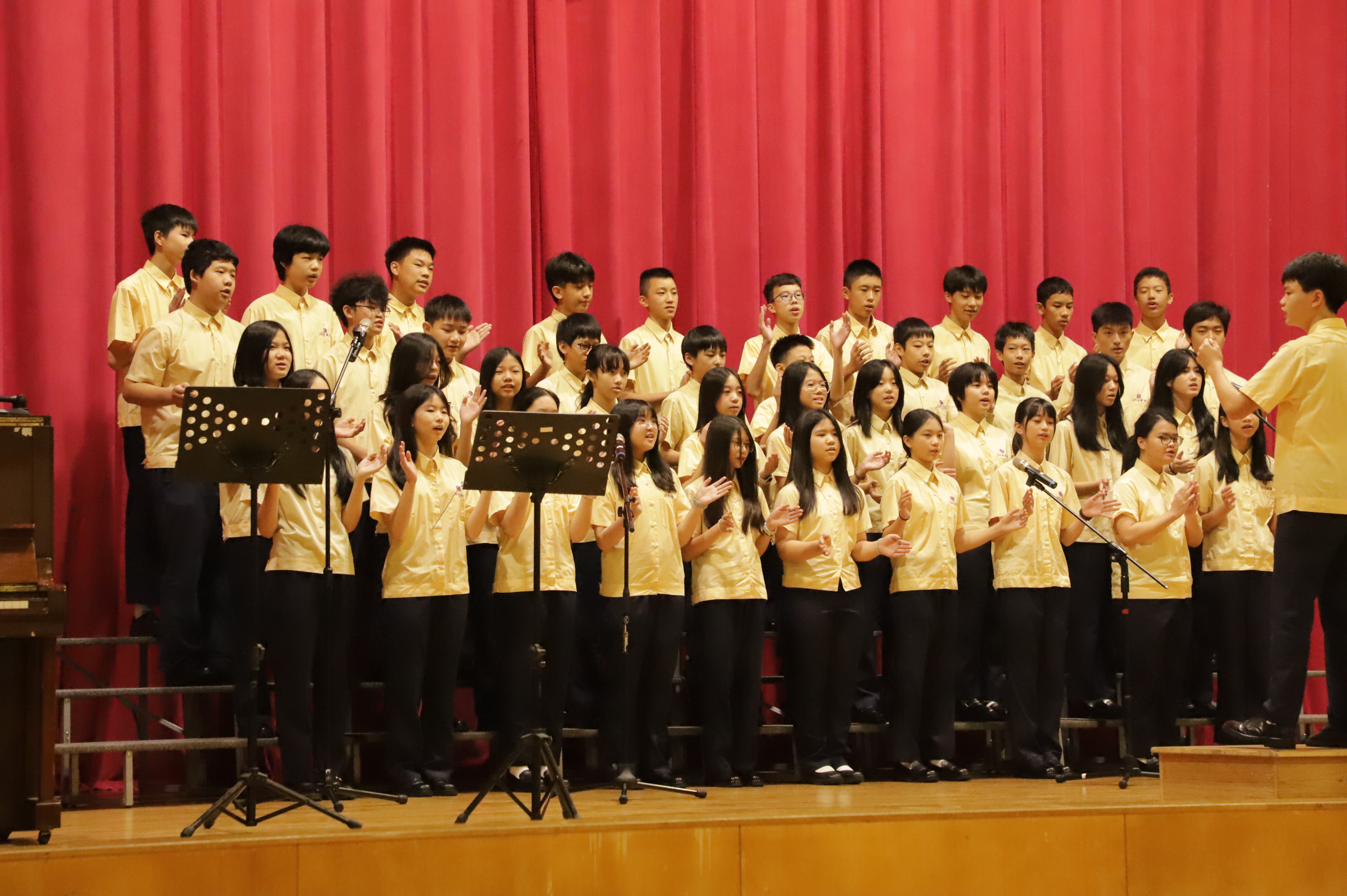 除了團體合唱的榮耀,比賽也肯定了在指揮與伴奏角色上表現突出的同學。恭喜八年愛班林以婕同學獲得「最佳指揮」殊榮,林同學在現場,除了指揮八年愛班,更轉身指揮全場同學一起參與拍手節奏,帶動全場投入氣氛。八年孝班李心妤同學,指尖優揚如流水般的琴聲及展現與指揮的好默契,榮獲「最佳伴奏」榮耀。